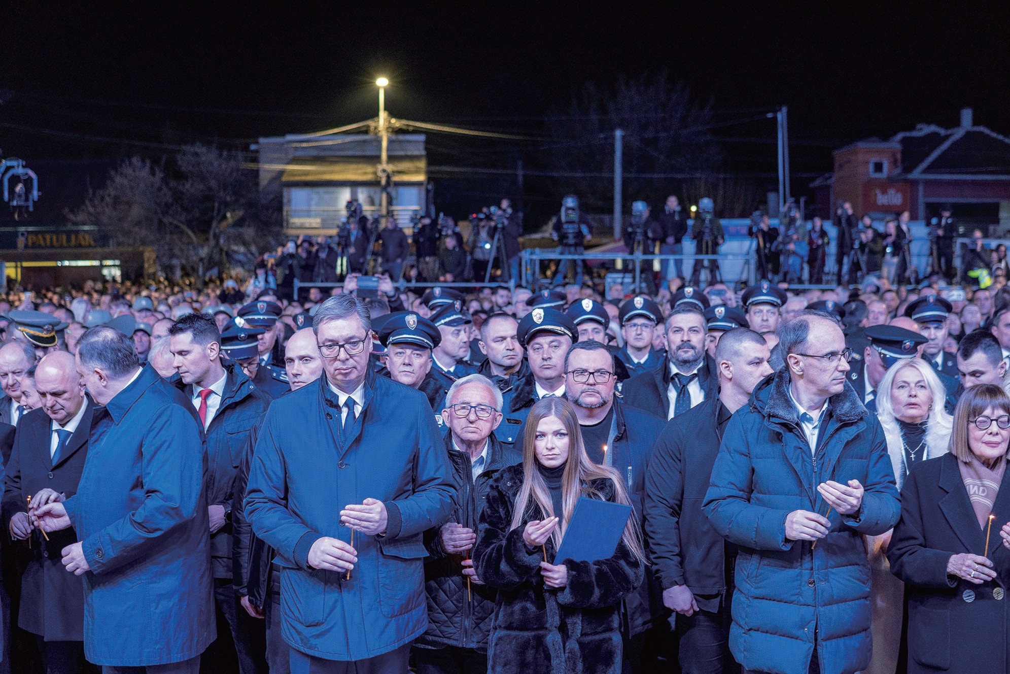 24日晚,超过1万人在塞尔维亚南部城市弗拉涅举行集会,悼念27年前北约轰炸南斯拉夫联盟共和国的遇难者。新华社图