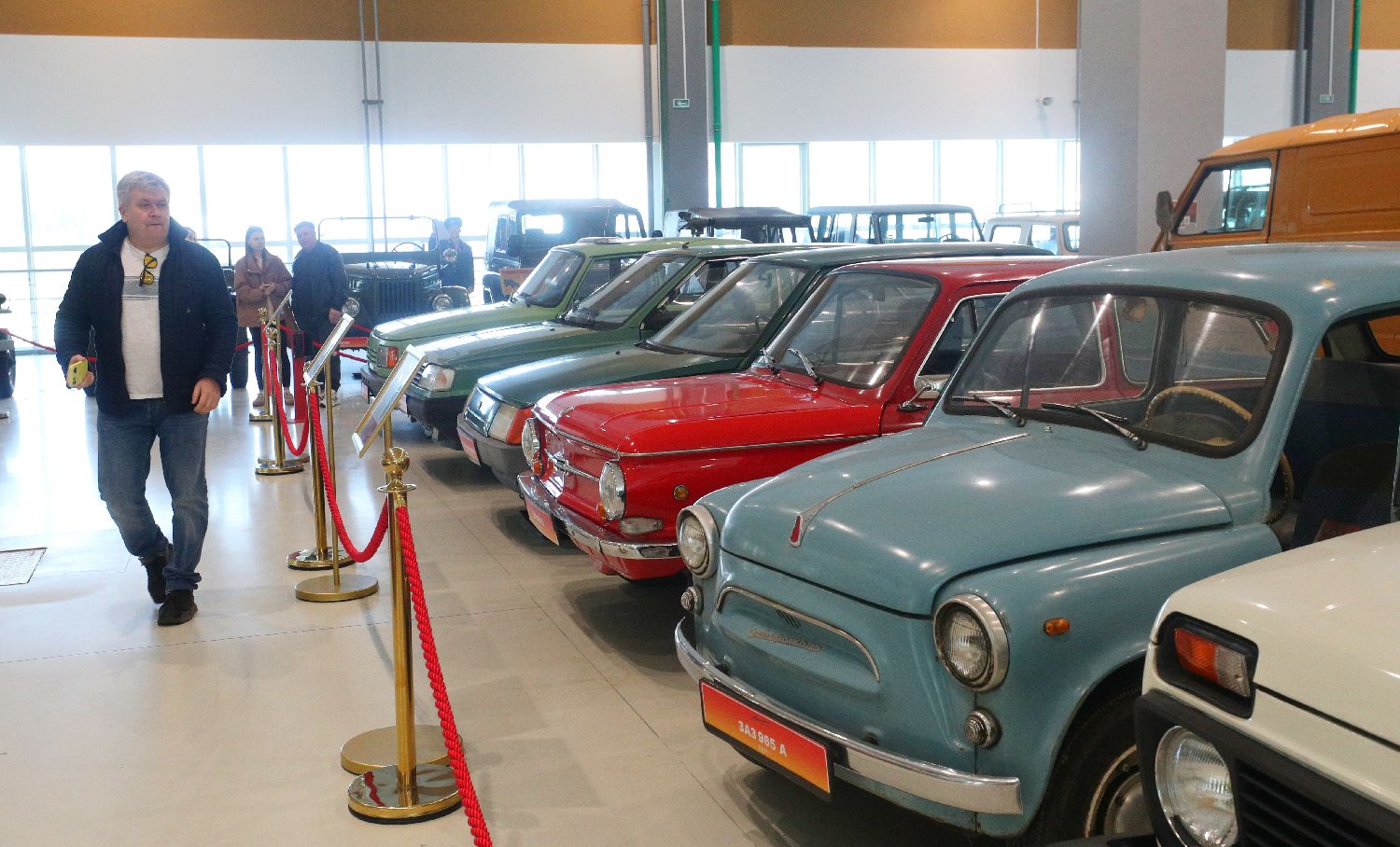 3月28日,人们在白俄罗斯明斯克州的复古车展上拍照。