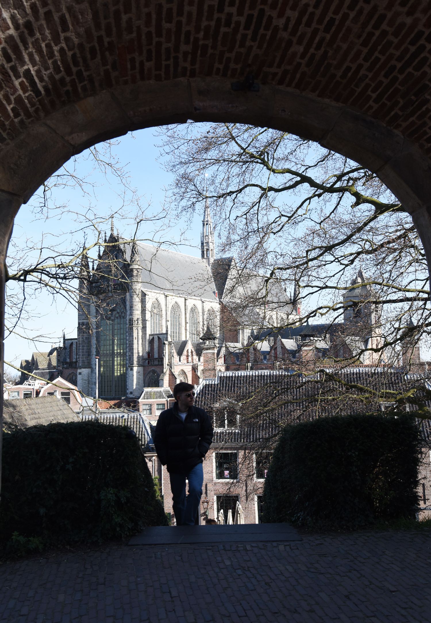 4月6日,在荷兰莱顿,一名男子走入莱顿城堡大门。