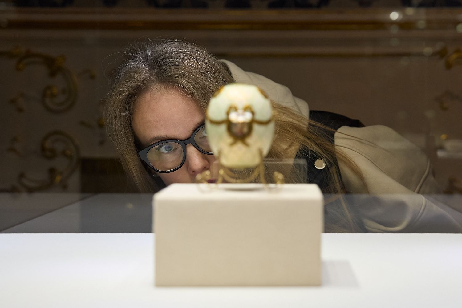 4月7日,一名观众在俄罗斯圣彼得堡的法贝热博物馆参观。(图片来源:本文图片均据新华社)