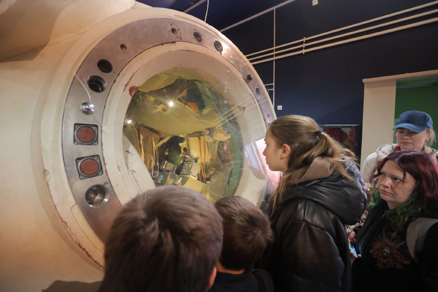 4月12日,在俄罗斯圣彼得堡的格卢什科宇航与火箭技术博物馆,人们参观“联盟”号载人飞船返回舱。