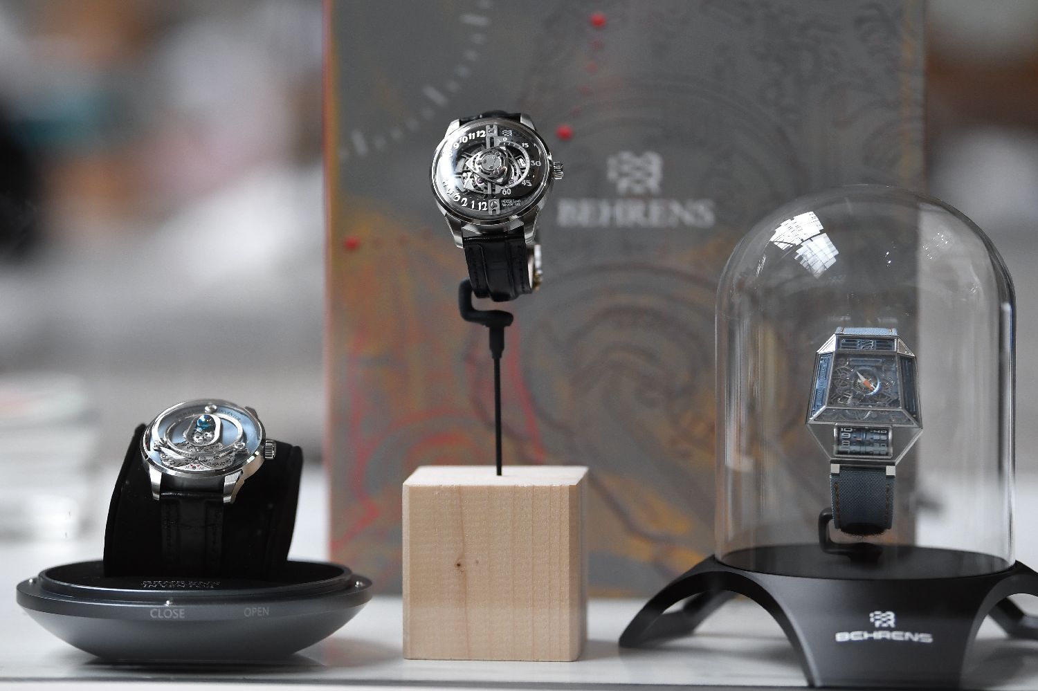 4月12日在瑞士拉绍德封的国际钟表博物馆内拍摄的中国品牌贝伦斯制作的腕表。