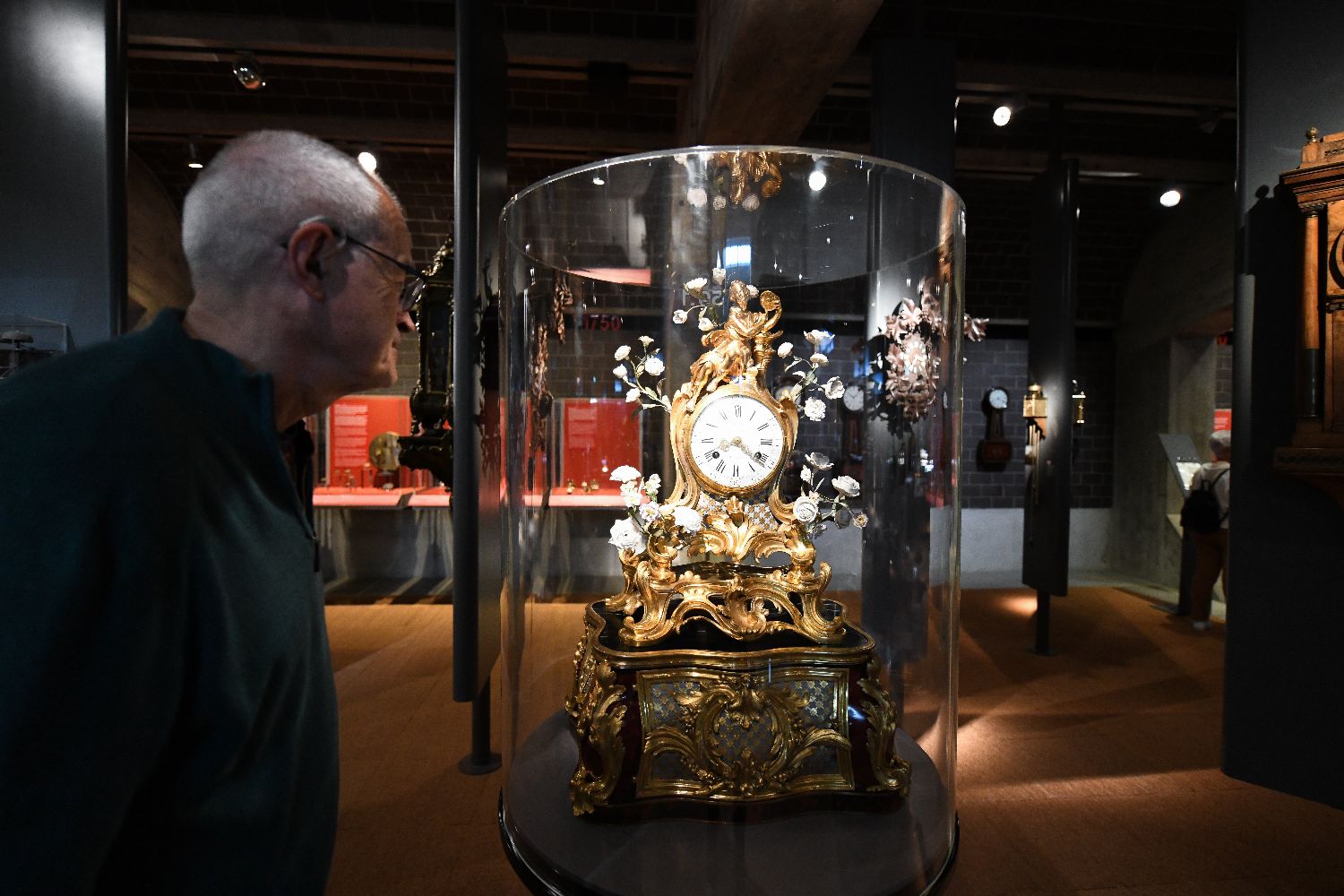 4月12日,一名男子在瑞士拉绍德封的国际钟表博物馆内观看展品。