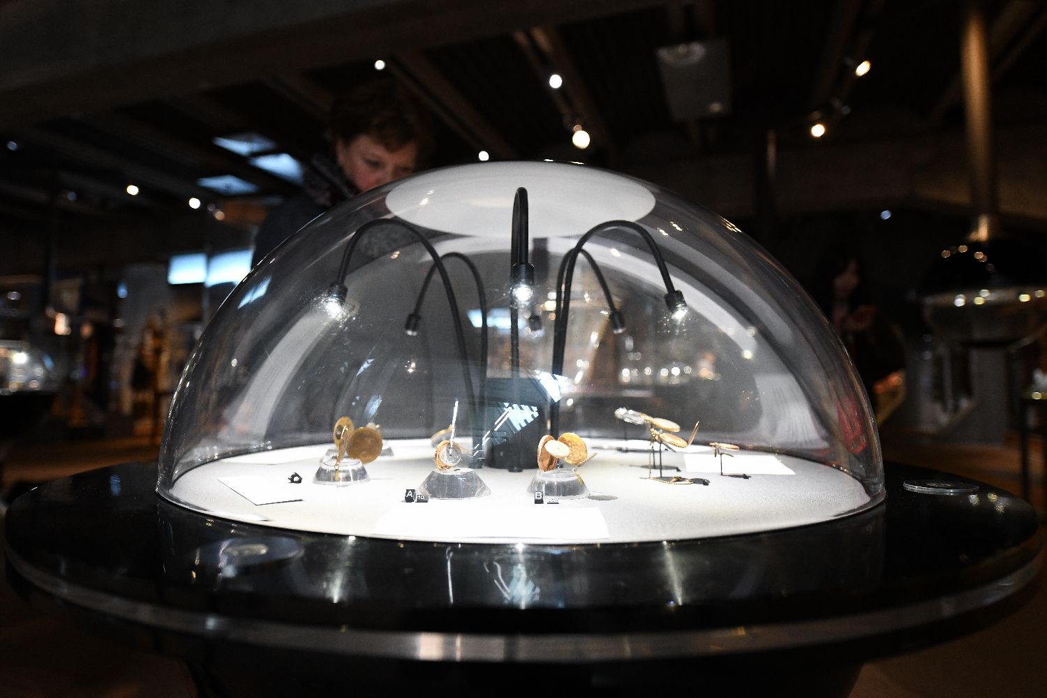 4月12日,一名女子在瑞士拉绍德封的国际钟表博物馆内观看展品。