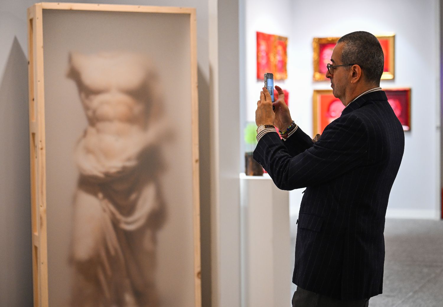 4月15日,在土耳其伊斯坦布尔,观众在土耳其青年当代艺术展预展上参观。(图片来源:新华社)