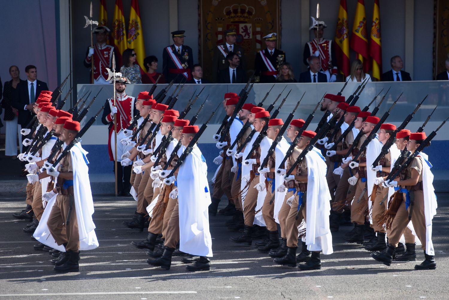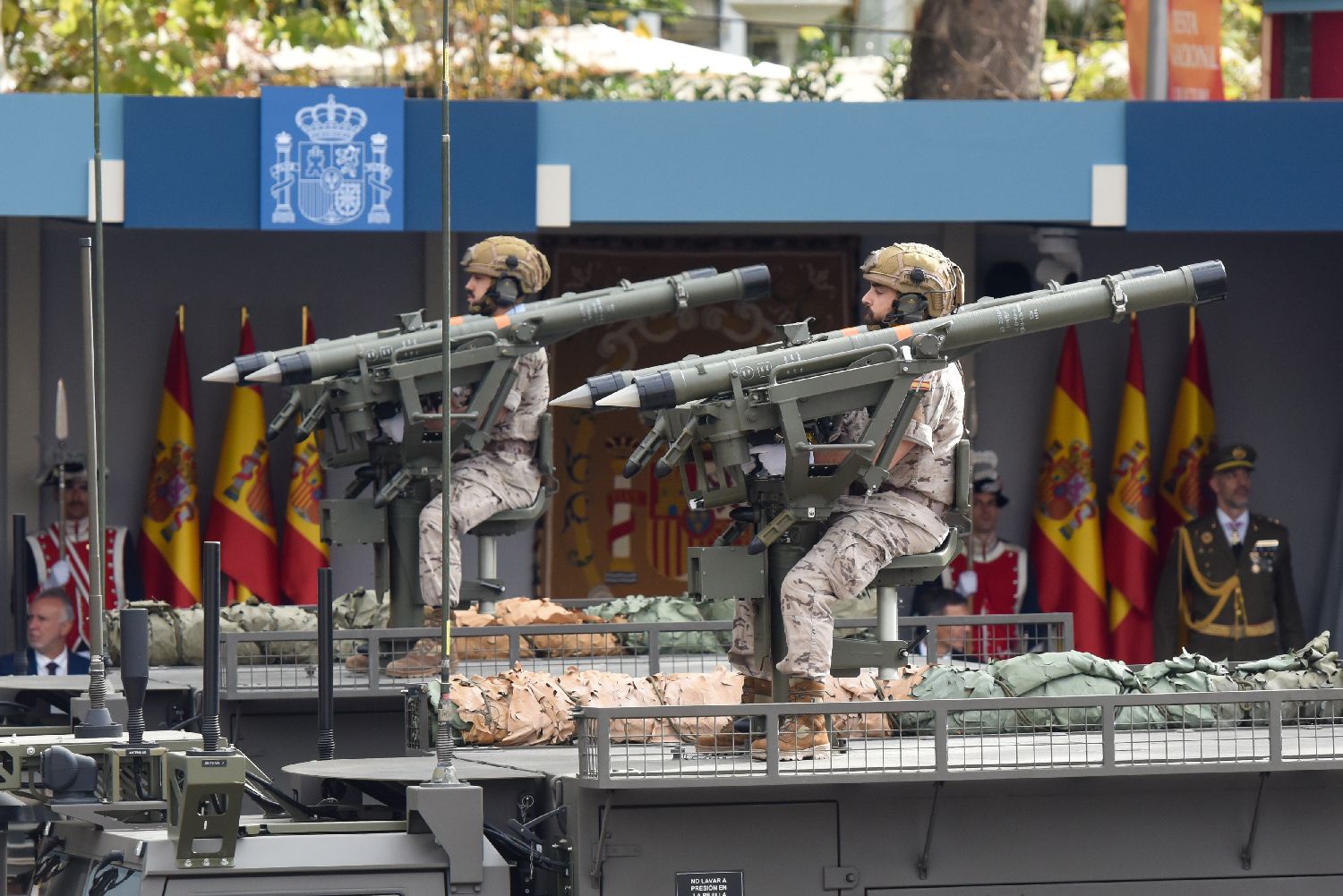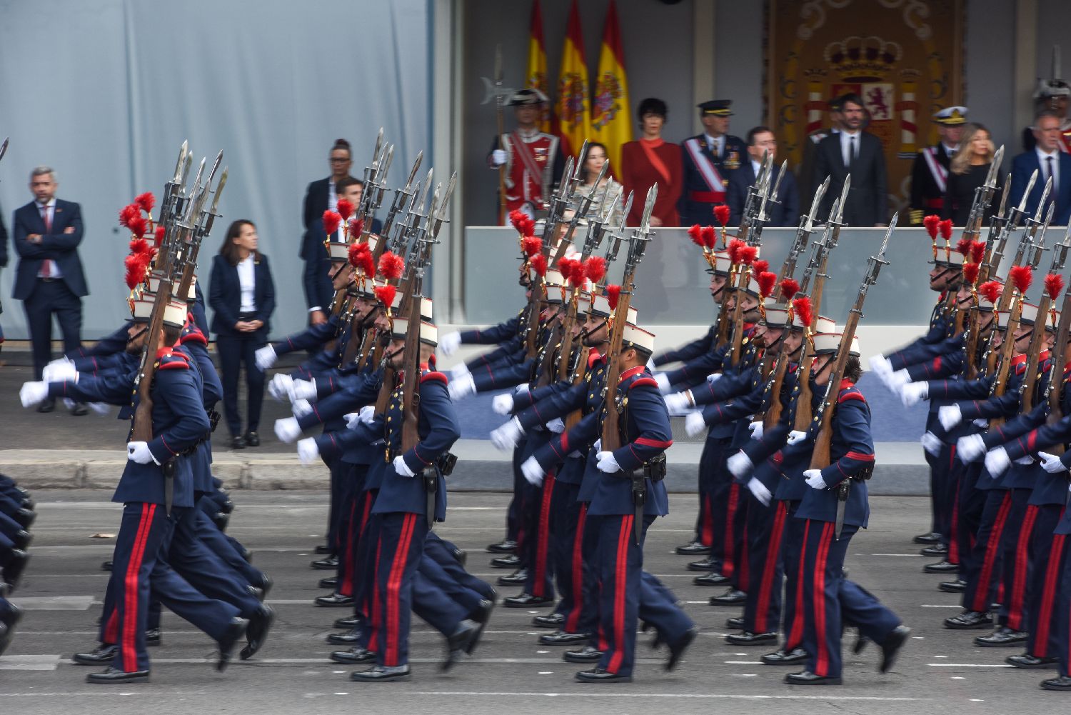 10月12日,在西班牙马德里,西班牙军队在国庆阅兵式上接受检阅。