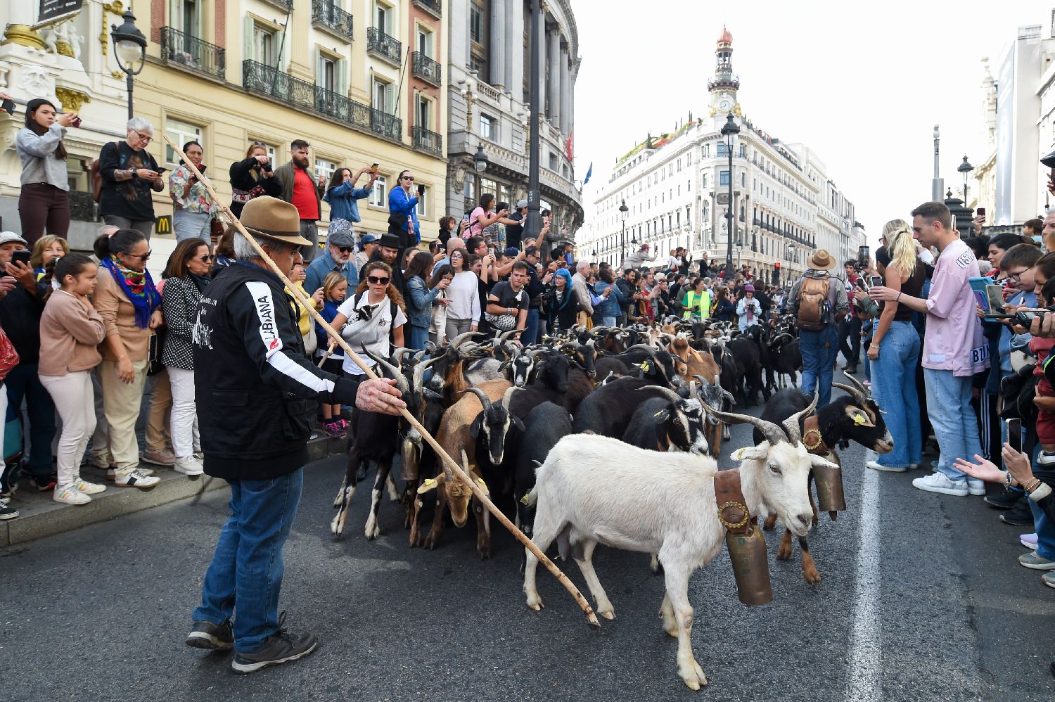 10月19日,牧羊人赶着羊群通过西班牙马德里市中心。
