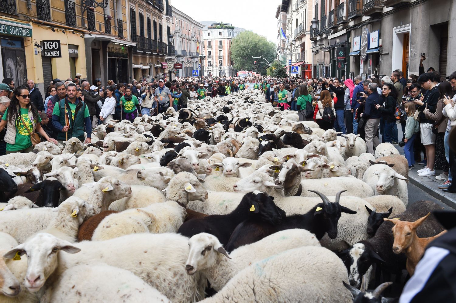 10月19日,牧羊人赶着羊群前往西班牙马德里市中心。