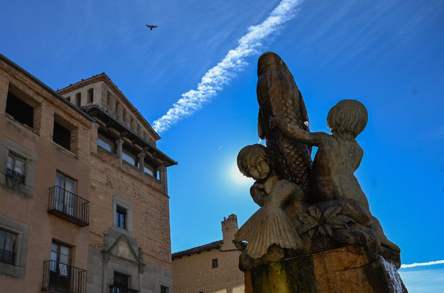 11月28日拍摄的西班牙塞哥维亚古城中的雕塑。