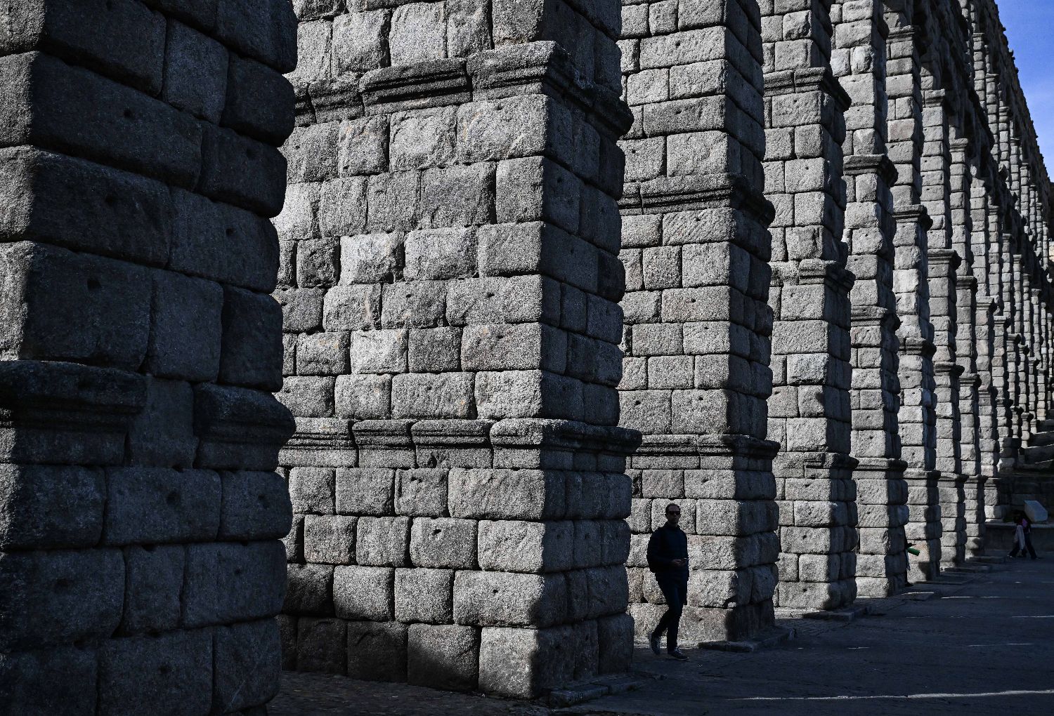 11月28日,在西班牙塞哥维亚,行人从古罗马高架引水渠脚下走过。
