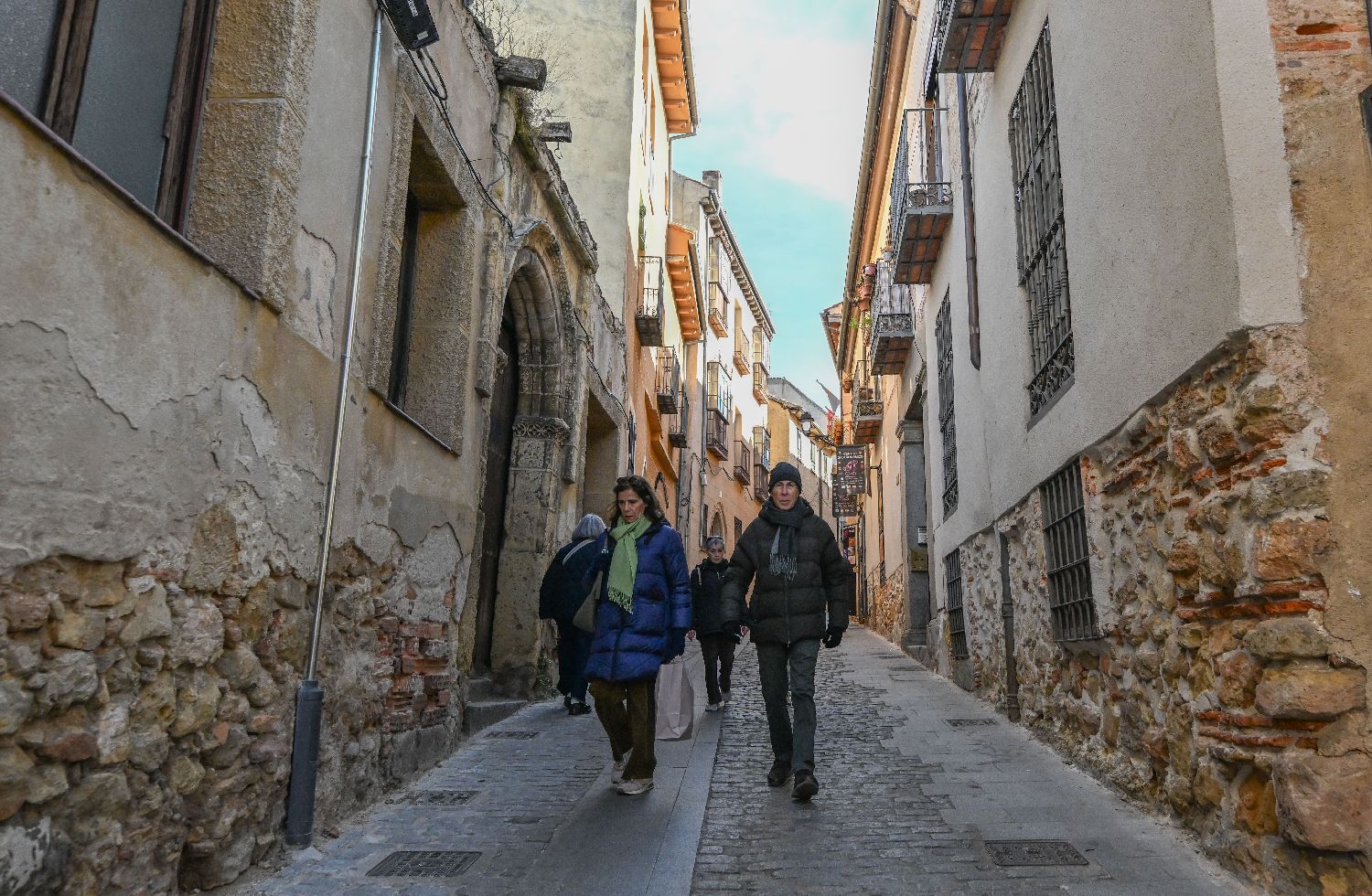 11月28日,游客在西班牙塞哥维亚古城中漫步。