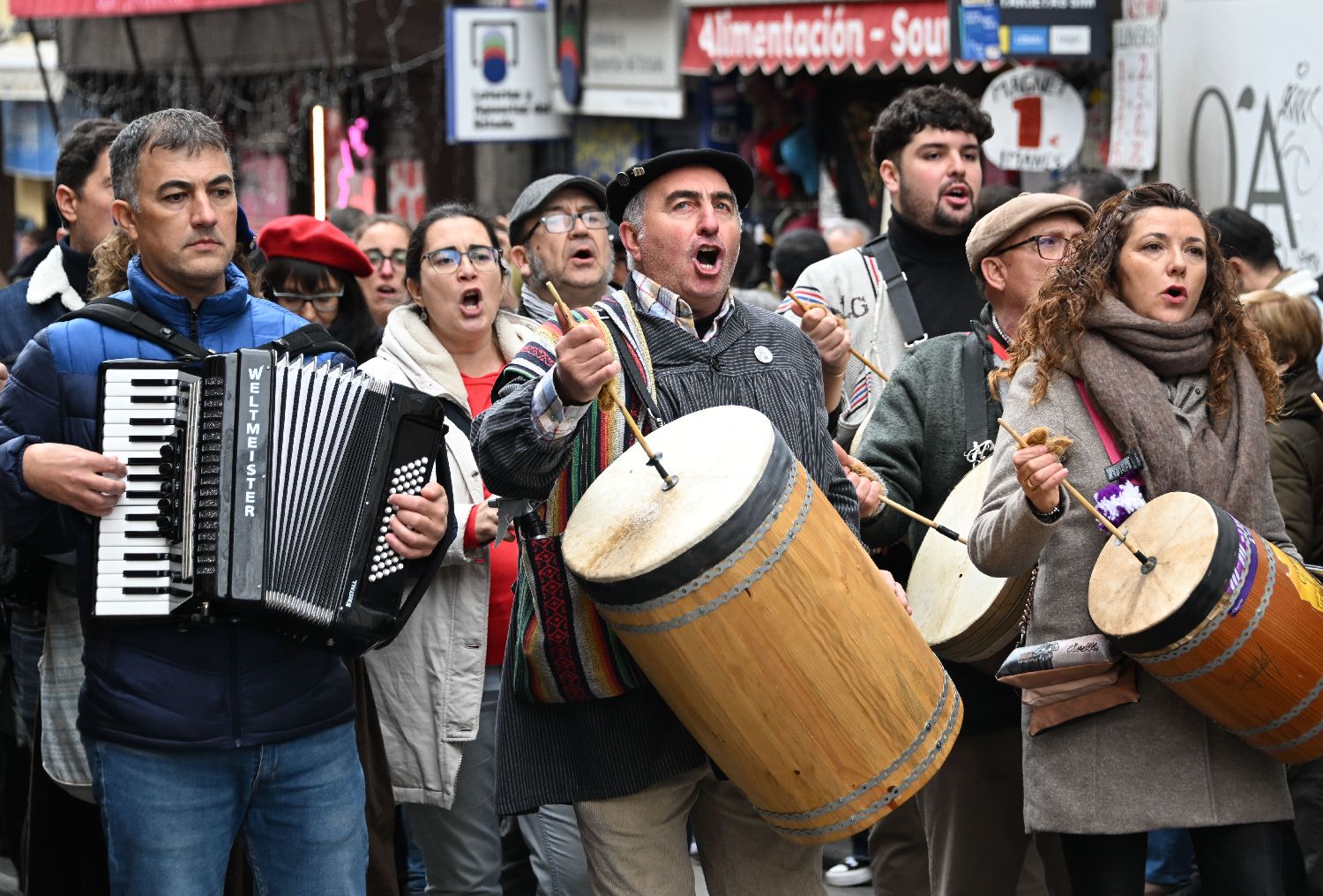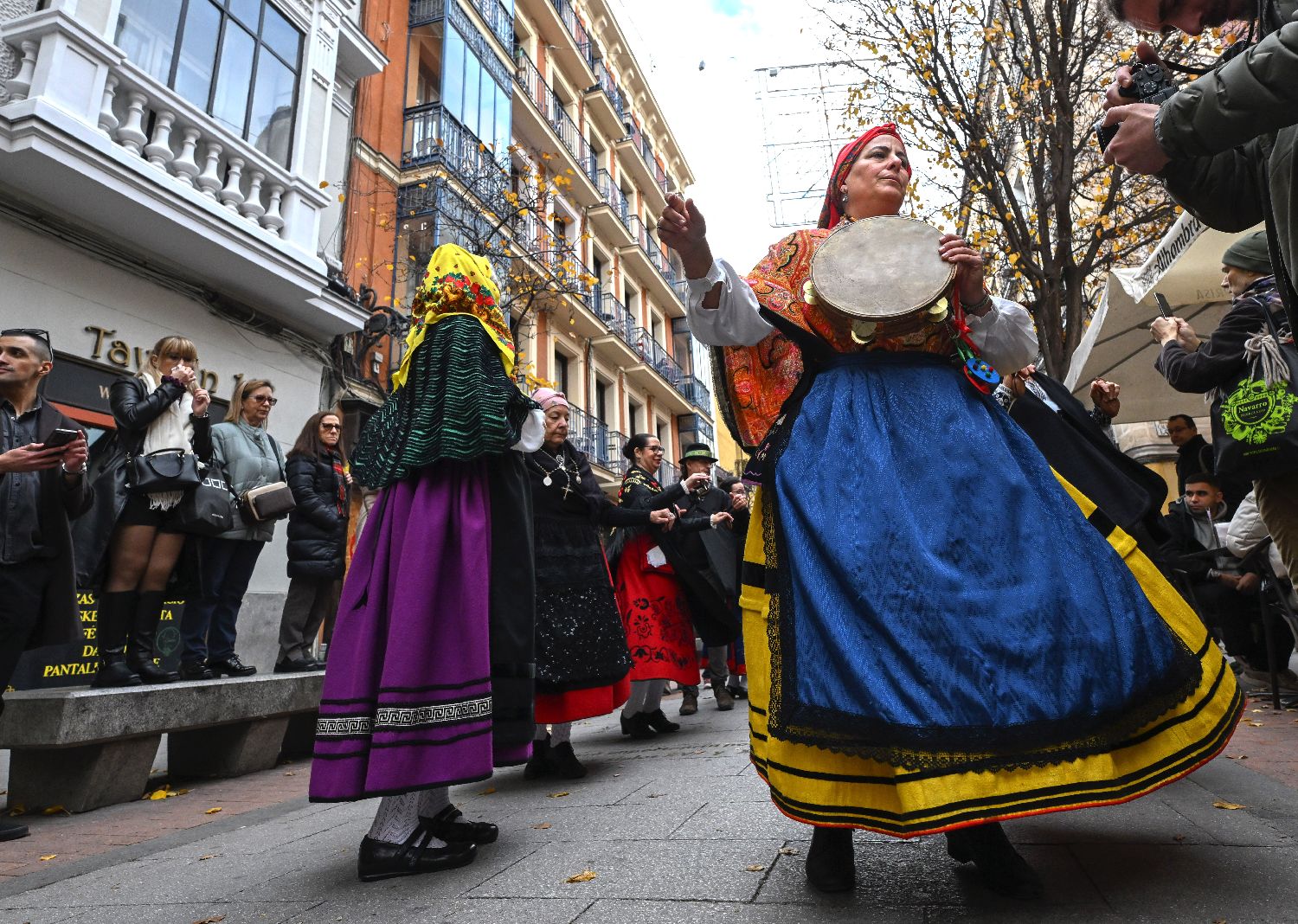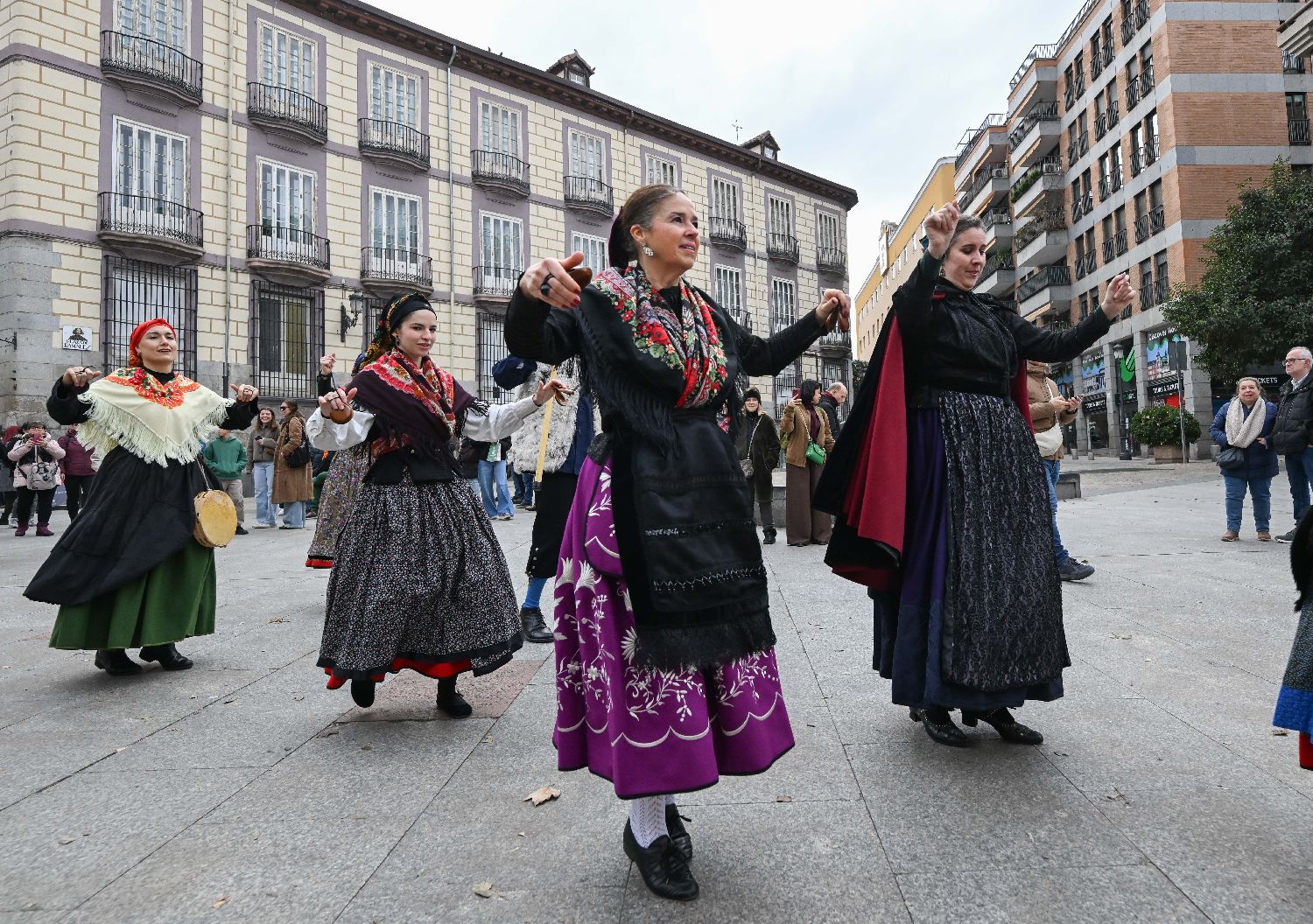 12月14日,来自西班牙马德里自治区及周边省份的传统民谣弹唱团与民俗表演队在马德里市中心街道上进行音乐巡游。