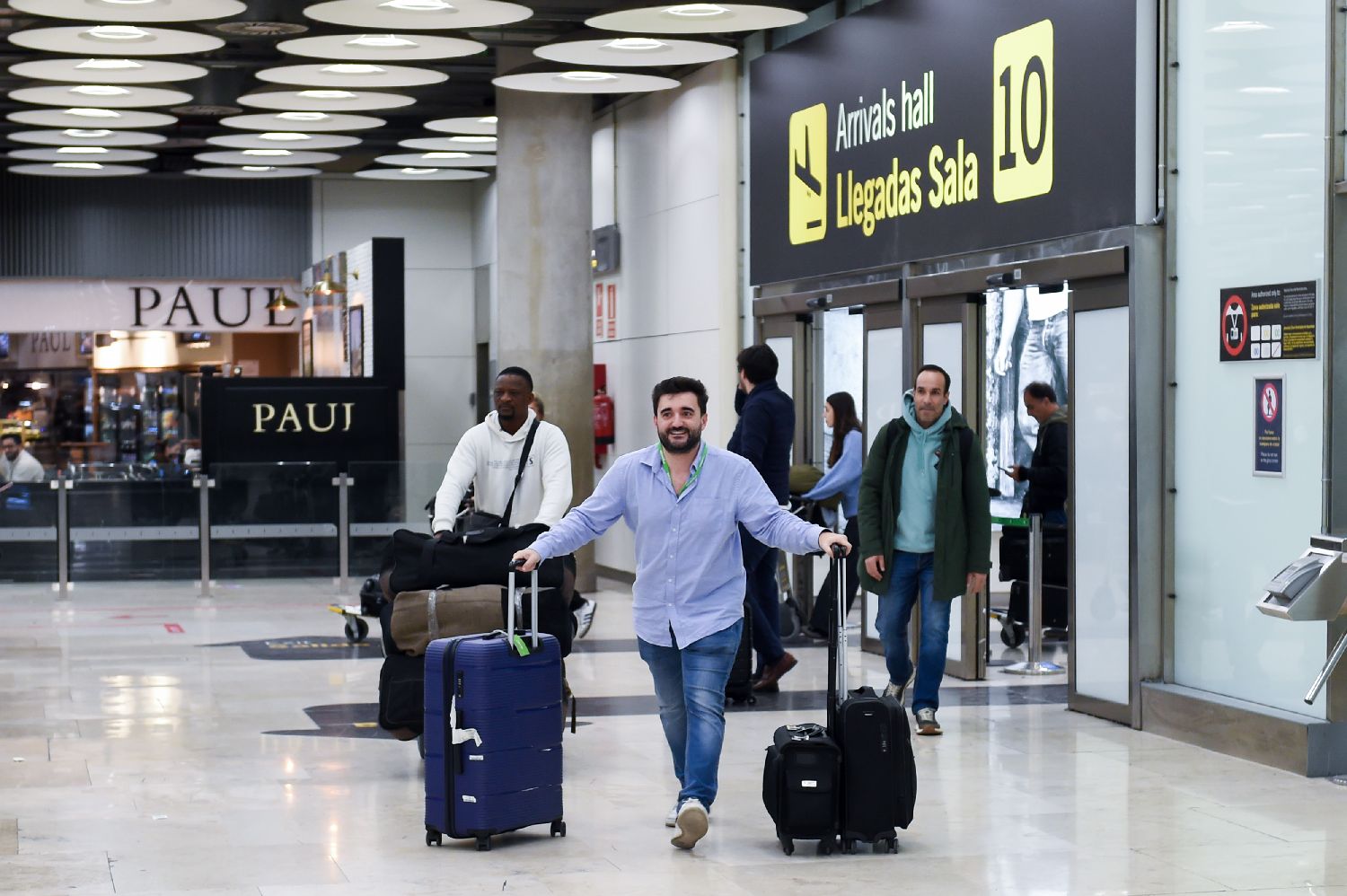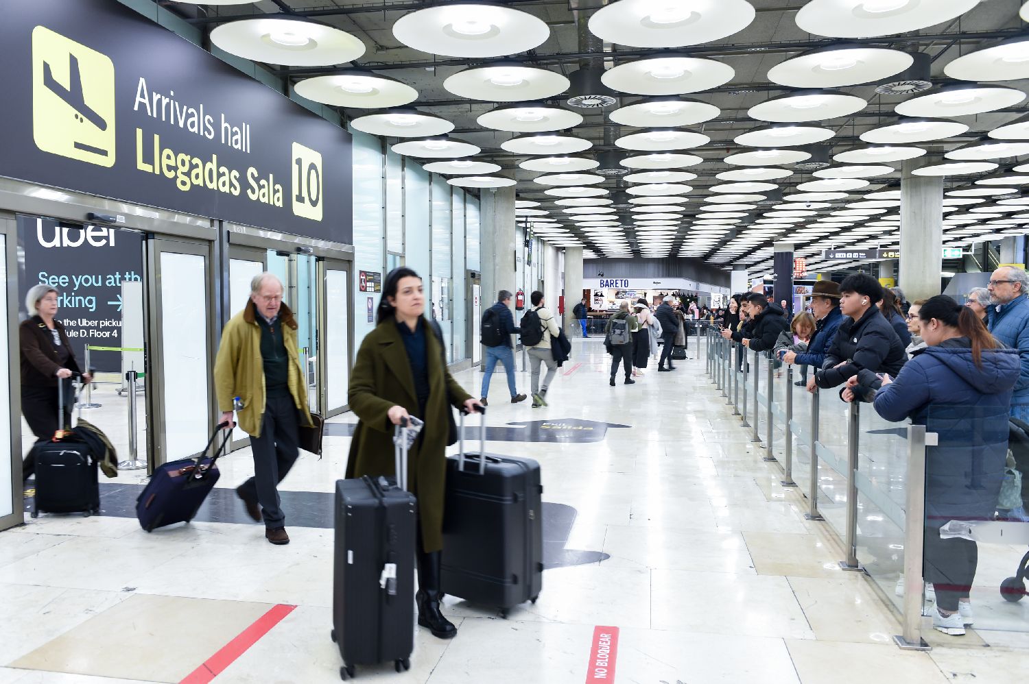1月15日,旅客抵达西班牙马德里巴拉哈斯机场。(图片来源:新华社)