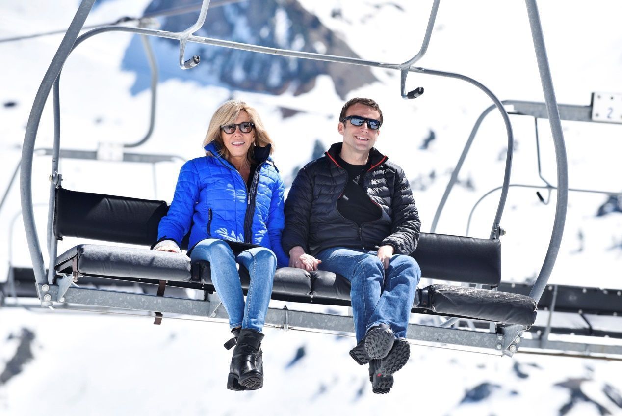 当地时间2017年4月12日,政治运动“前进”的创始人和领导人,当时还是法国总统大选候选人的马克龙(右)和他的妻子布丽吉特(左)在巴涅尔-德比戈尔雷举行会议前,前往比利牛斯山的拉蒙吉山顶享用午餐。(图片来源:CFP)