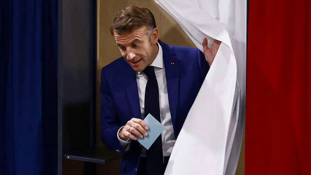 马克龙6月30日参加法国国民议会选举第一轮投票。(图片来源:法新社网页截图)