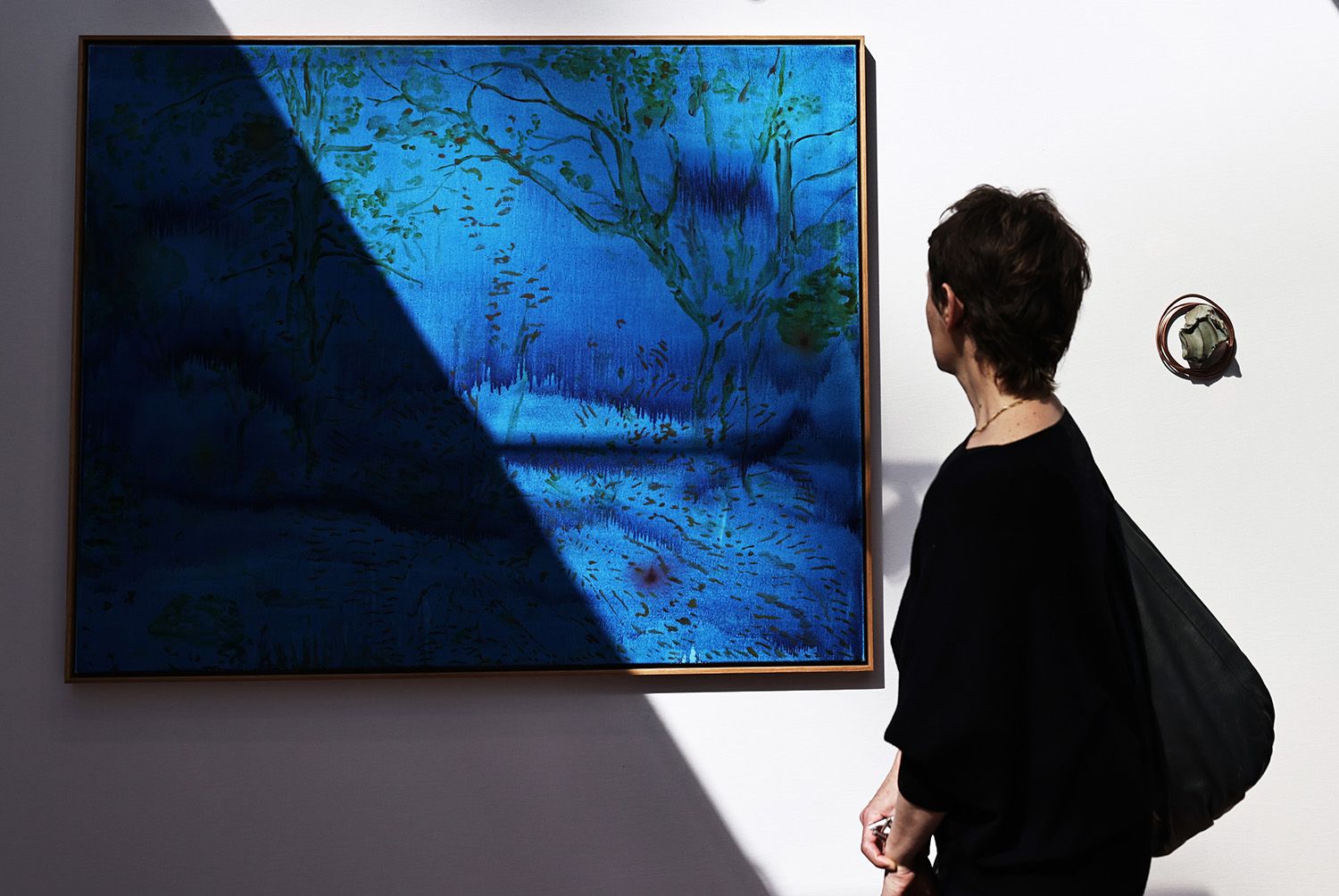 一名女子在法国巴黎大皇宫举行的2025年巴黎艺术博览会上参观。