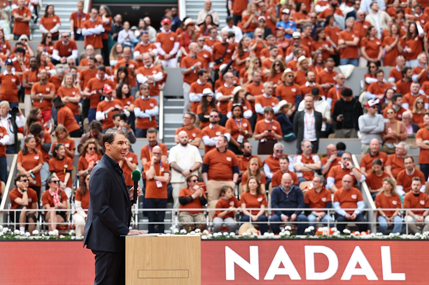5月25日,2025年法国网球公开赛为西班牙网球运动员纳达尔举行致敬仪式。