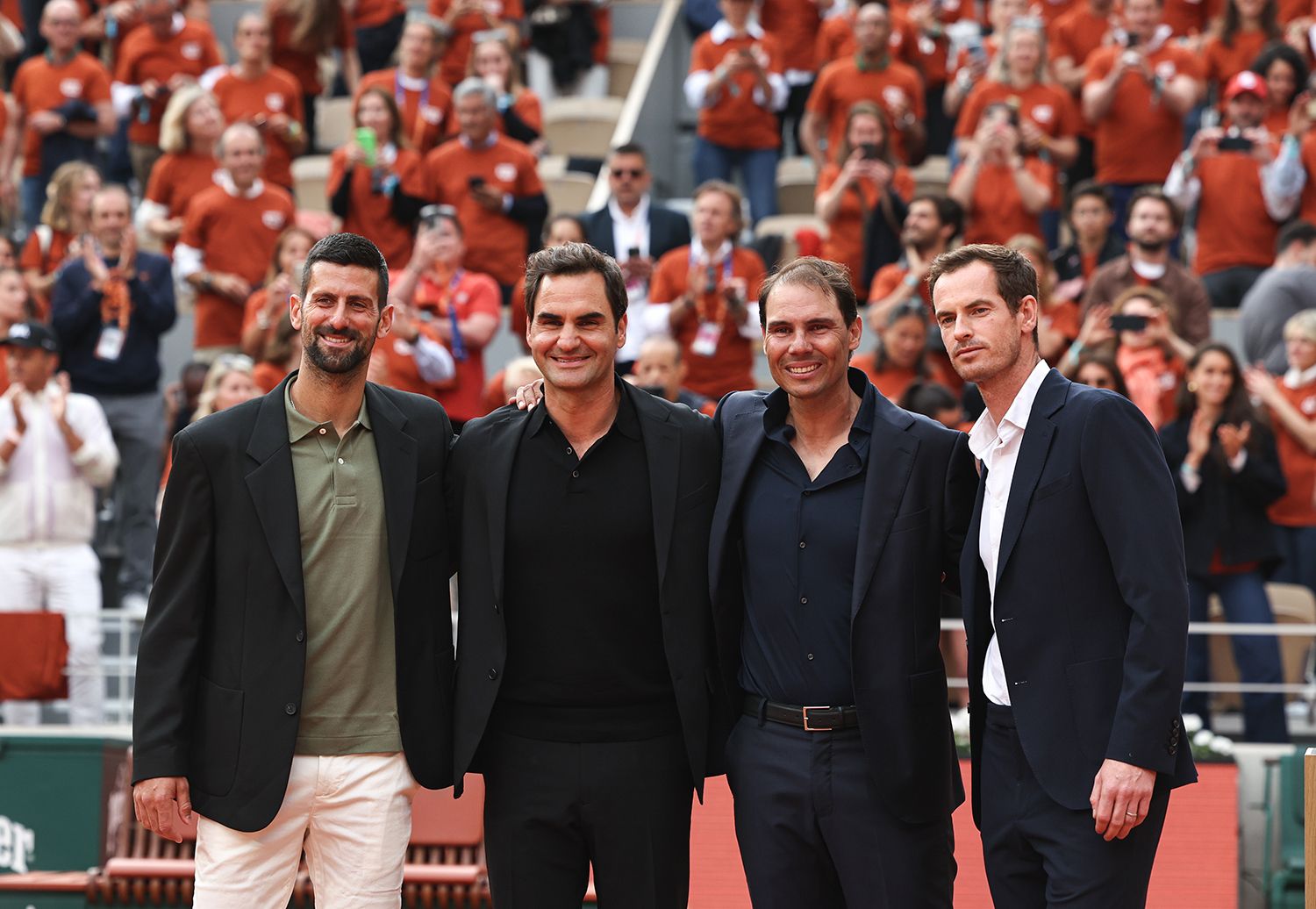 焦科维奇、费德勒、纳达尔和穆雷(从左至右)在致敬仪式上合影。