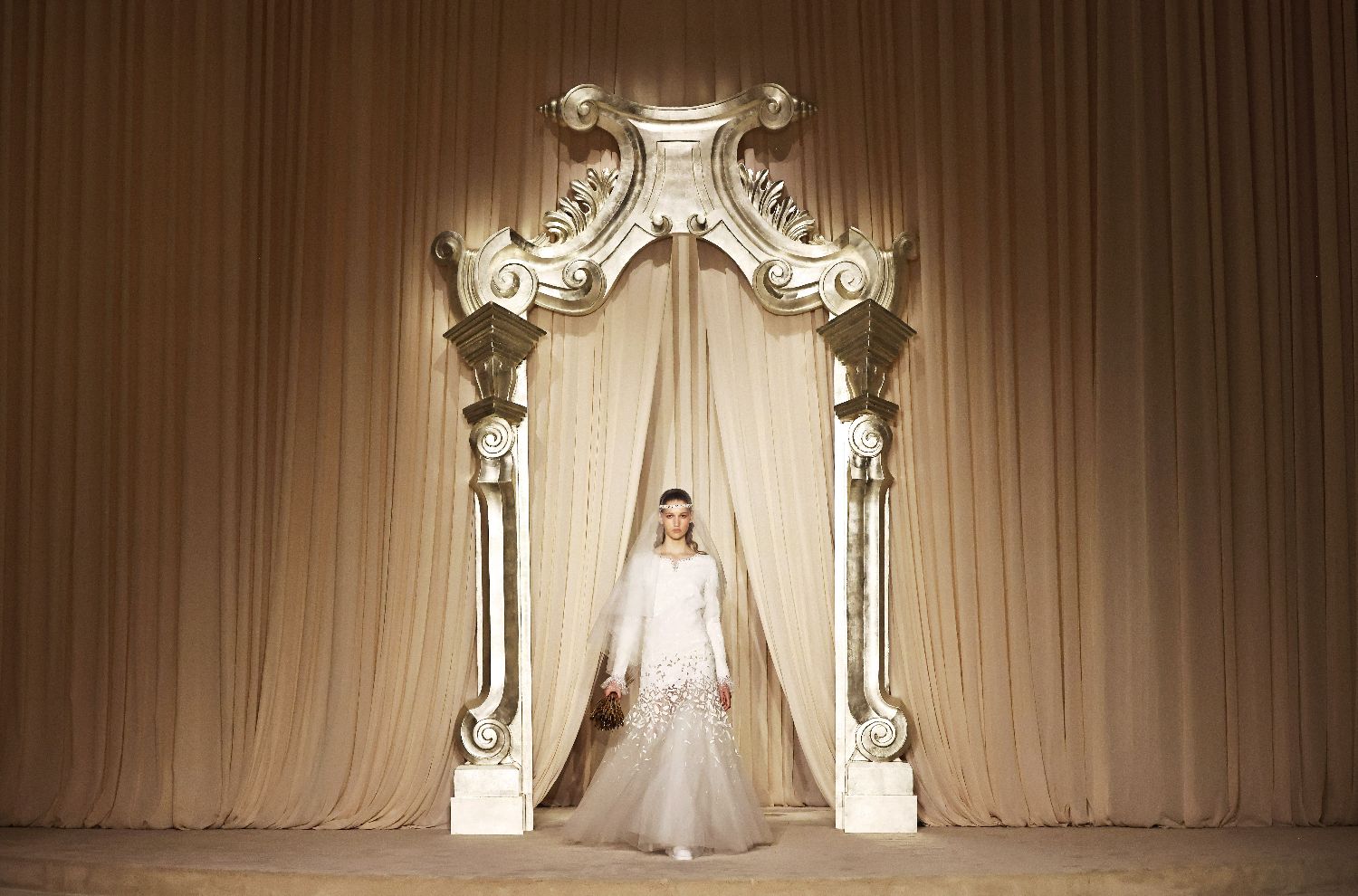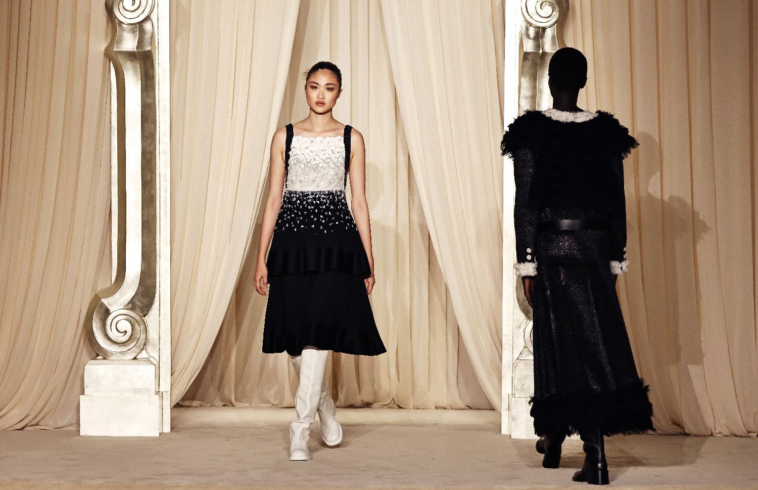 7月8日,模特在法国巴黎高级定制周上展示法国品牌香奈儿2025/2026秋冬新品。