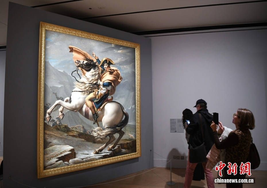 观众在欣赏他创作的名画《拿破仑翻越阿尔卑斯山》。(图片来源:本文图片均据中新网)