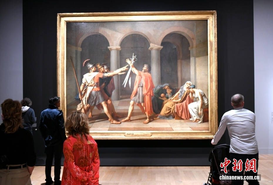 观众在欣赏他创作的名画《荷拉斯兄弟之誓》。