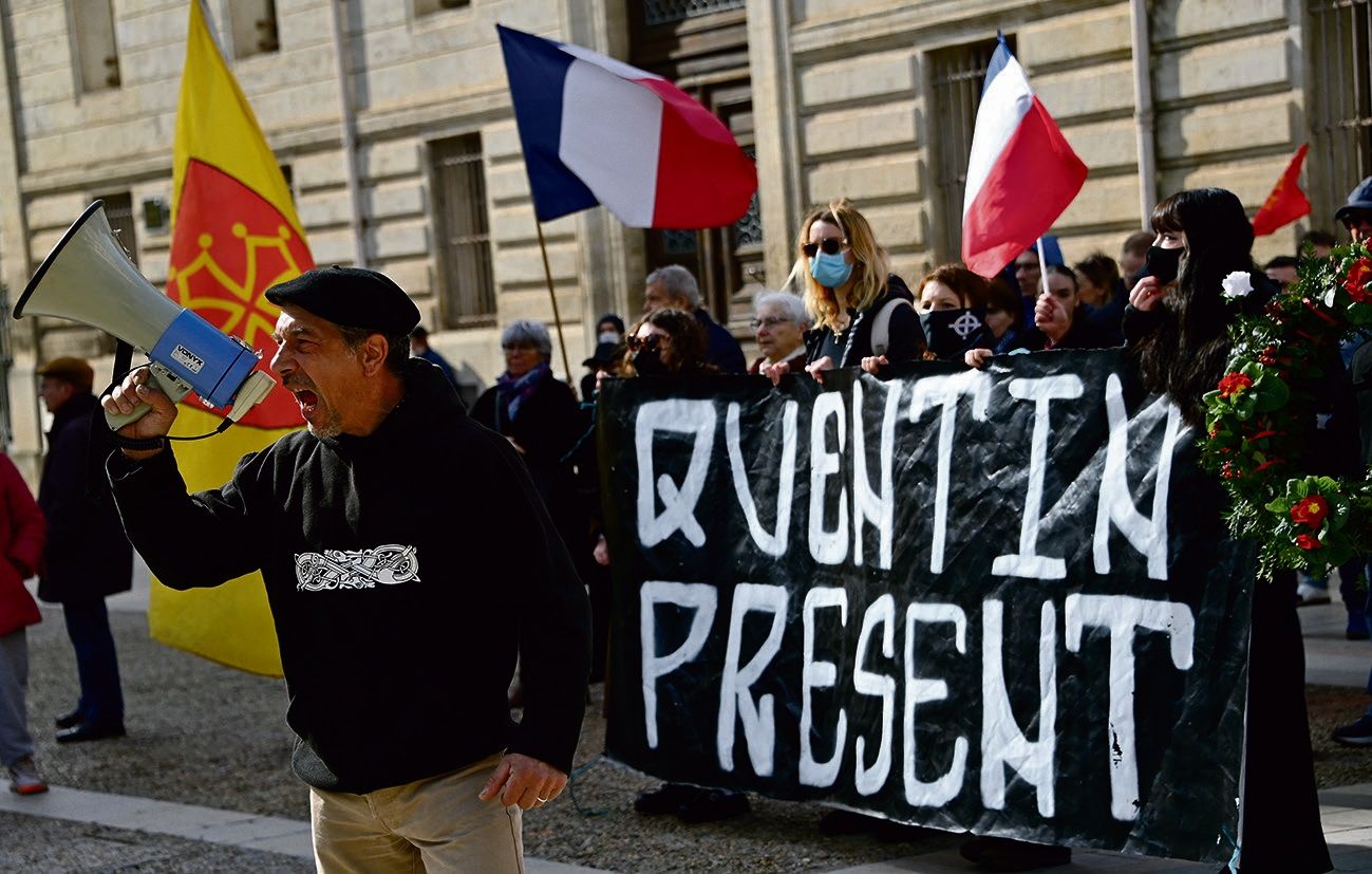 据信为“涅墨西斯”支持者的23岁大学生昆汀(Quentin D.)在活动期间遭到多名不明身份者围攻,头部受到重创后送医抢救,14日终因伤势过重离世。