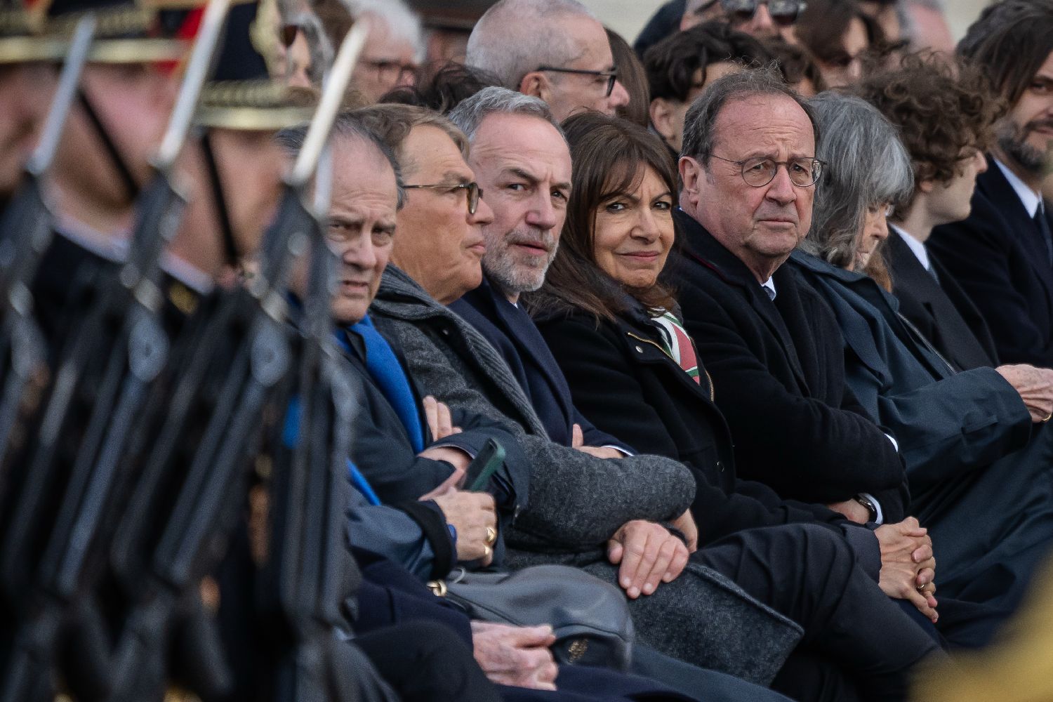 3月26日,法国前总统奥朗德(右四)等在巴黎荣军院出席悼念活动。