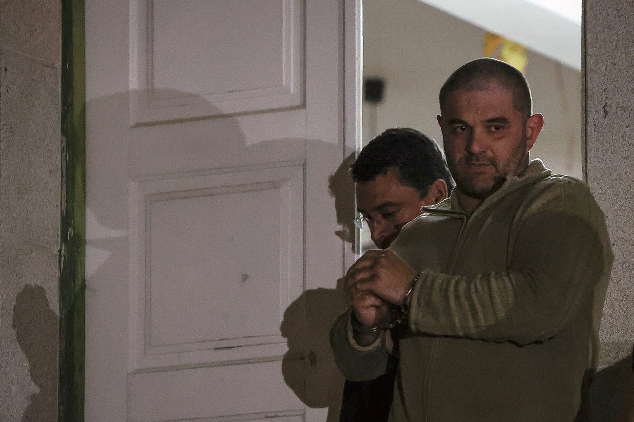 普里松曾在巴黎警察局任职,并与前任伴侣卷入一场激烈的监护权之争。此前他杀害前任与现任伴侣后,带着12岁儿子和1岁半女儿逃亡,3月25日在葡萄牙被捕。图为普里松26日在葡萄牙法院出庭后离开。法新社图