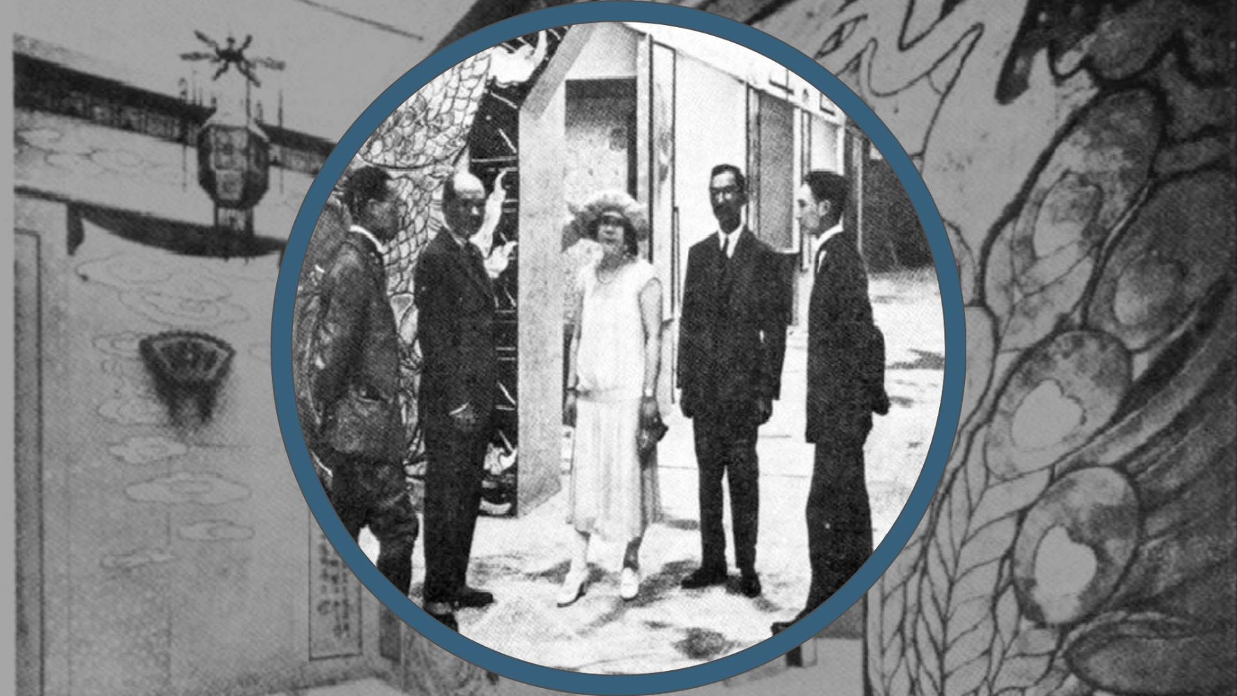 Photo du haut : entrée de la section chinoise de l'exposition internationale de Paris de 1925 avec les organisateurs. DR.