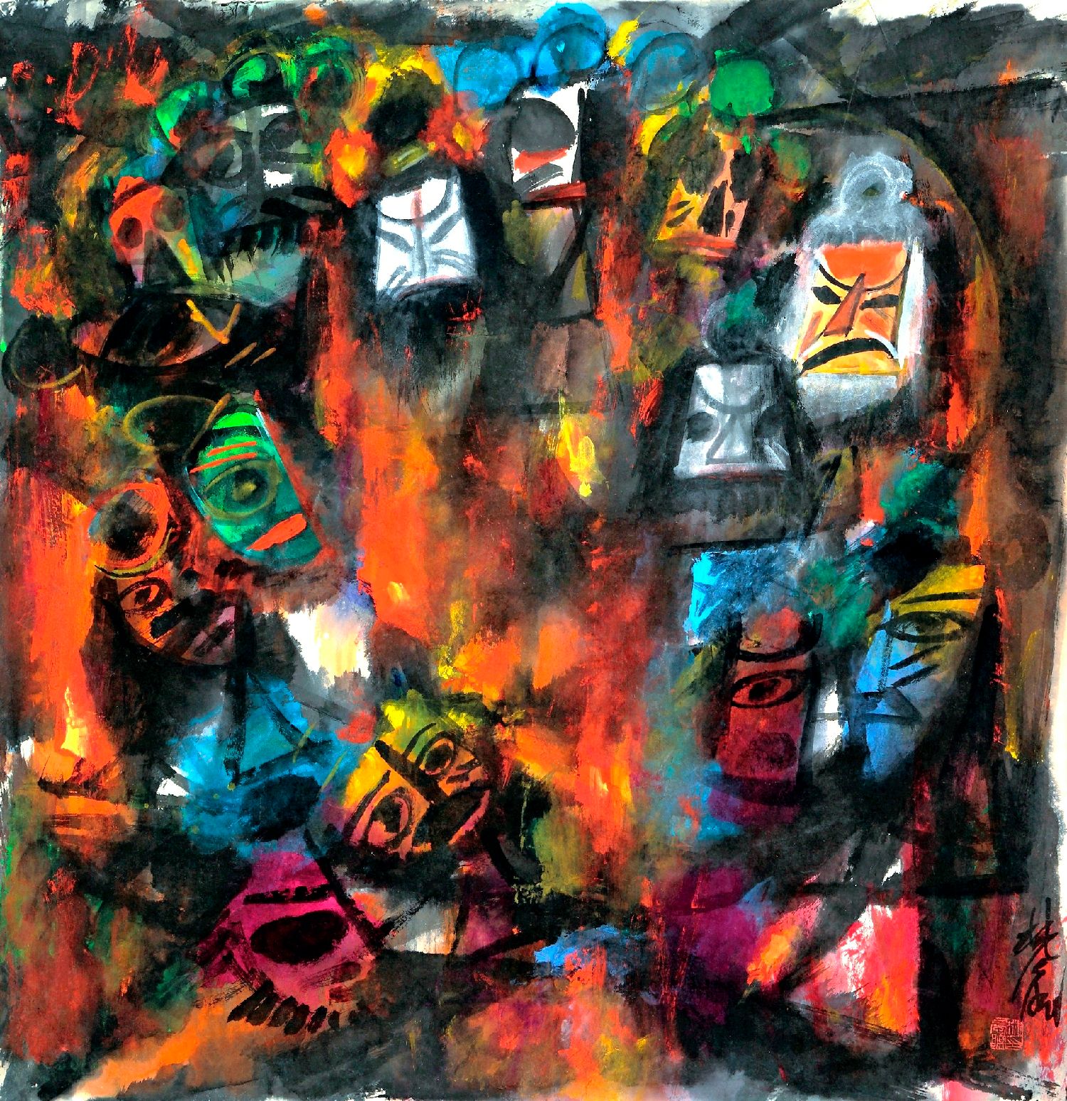 Lin Fengmian (1900-1991), La Bataille enflammée des Falaises rouges, encre et couleur sur papier. DR.