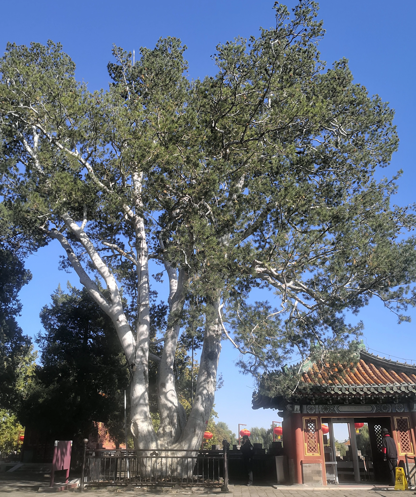 On raconte que l’écrivain français Pierre Loti (1850-1923) aurait installé son bureau dans un bâtiment de la forteresse Ronde pendant l’occupation de Pékin par les troupes de l’Alliance des huit nations, en 1900-1901. Au-delà de l’anecdote, le site conserve plusieurs éléments anciens d'intérêt. Les plus anciens sont deux arbres plantés sur cette butte dans la deuxième moitié du 12e siècle, à l’époque où la dynastie Jin (1115-1234) avait établi sa capitale à Pékin et alors que la dynastie Song (960- 1279) ne contrôlait plus que le sud de la Chine. Le premier est un pin Napoléon (pinus bungeana) dont l’écorce est presque blanche et qui se ramifie en trois branches presque à la base. Le deuxième vieil arbre est un pin huileux (pinus tabuliformis) du même âge que le premier. L’empereur Qianlong conféra même à ce dernier le titre de marquis de l’Ombrage (zhe yin hou 遮荫侯), traduit en anglais par Marquis of Shade...