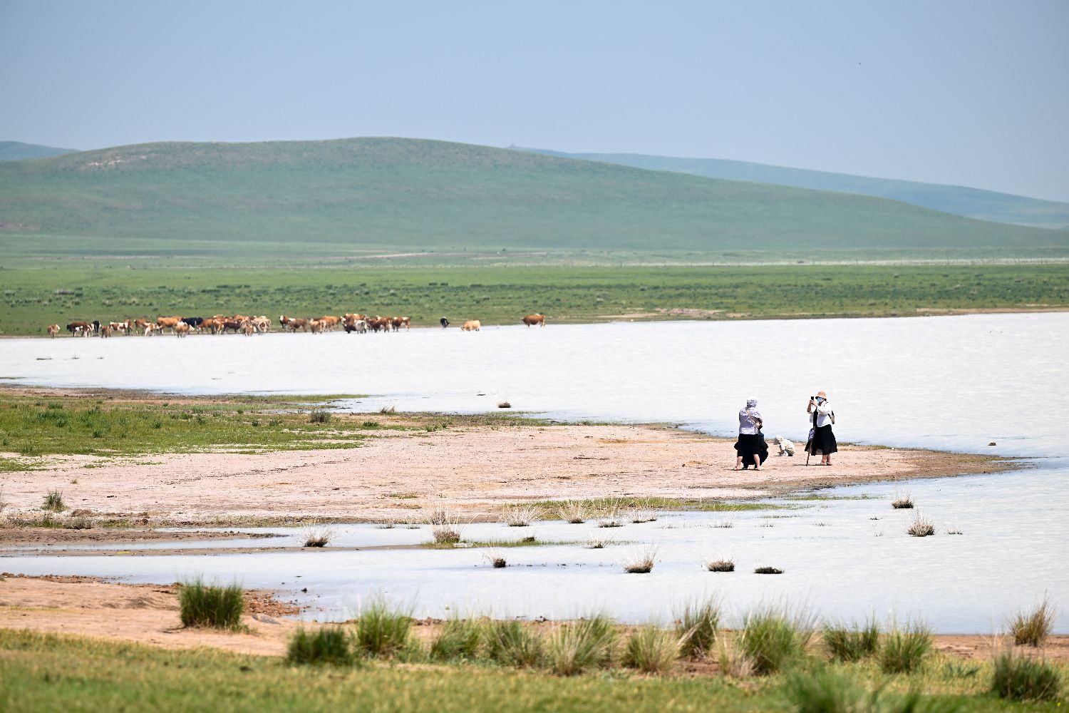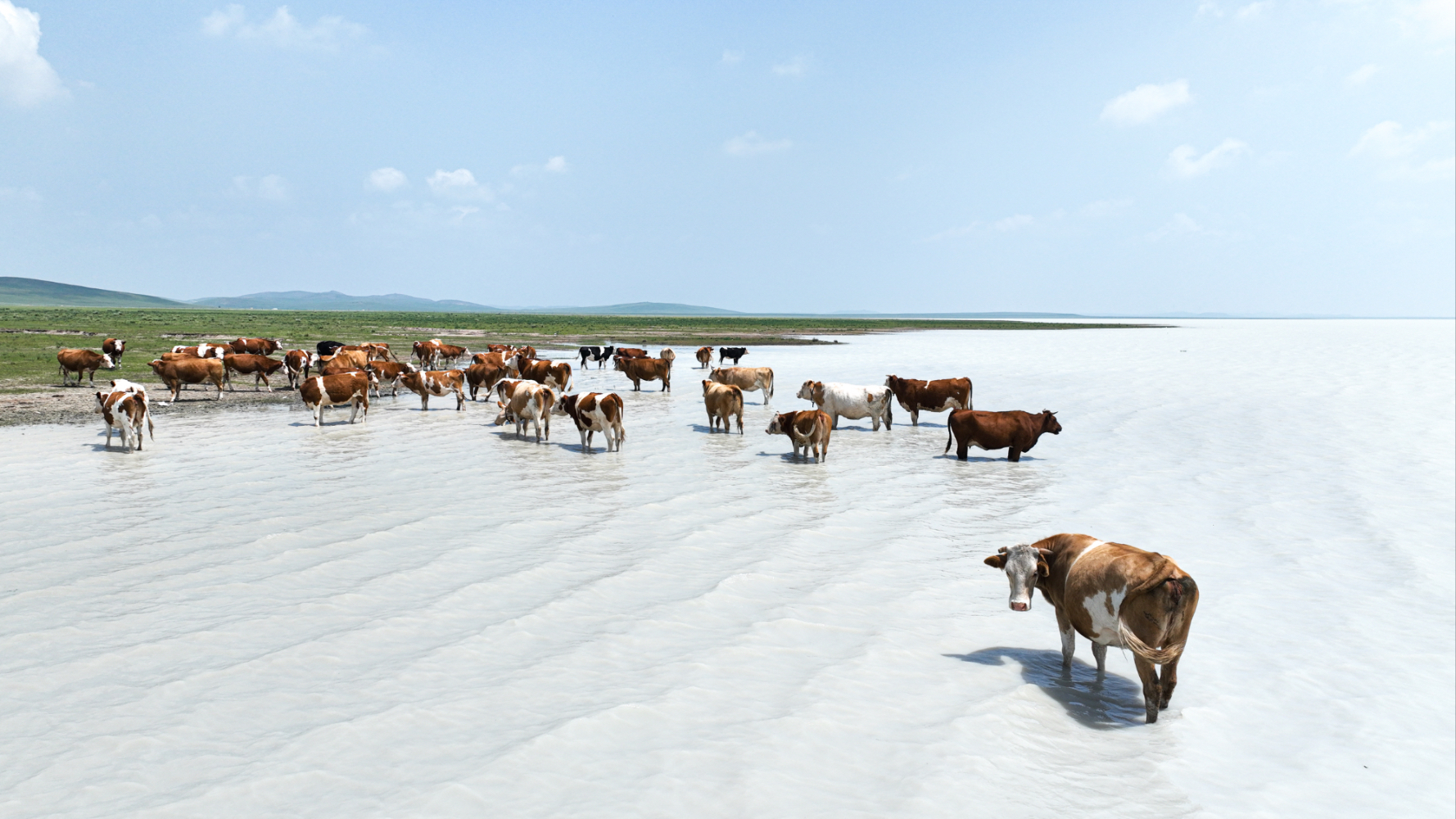 Nous sommes à Bayin Chagan, dans la bannière de Taipusi, en Mongolie-Intérieure. En cette journée d'été, des visiteurs longent les rives du lac surnommé « le lac de lait », dont les eaux laiteuses reflètent la lumière du ciel dans une atmosphère irréelle.