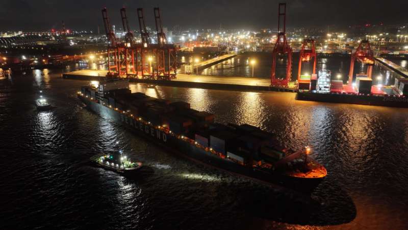 Das Frachtschiff verließ am Dienstag um 04:30 Uhr den chinesischen Hafen und steuerte den größten Containerhafen Großbritanniens, Felixstowe, an. Es hatte zuvor mehr als 1.000 Standardcontainer abgefertigt.