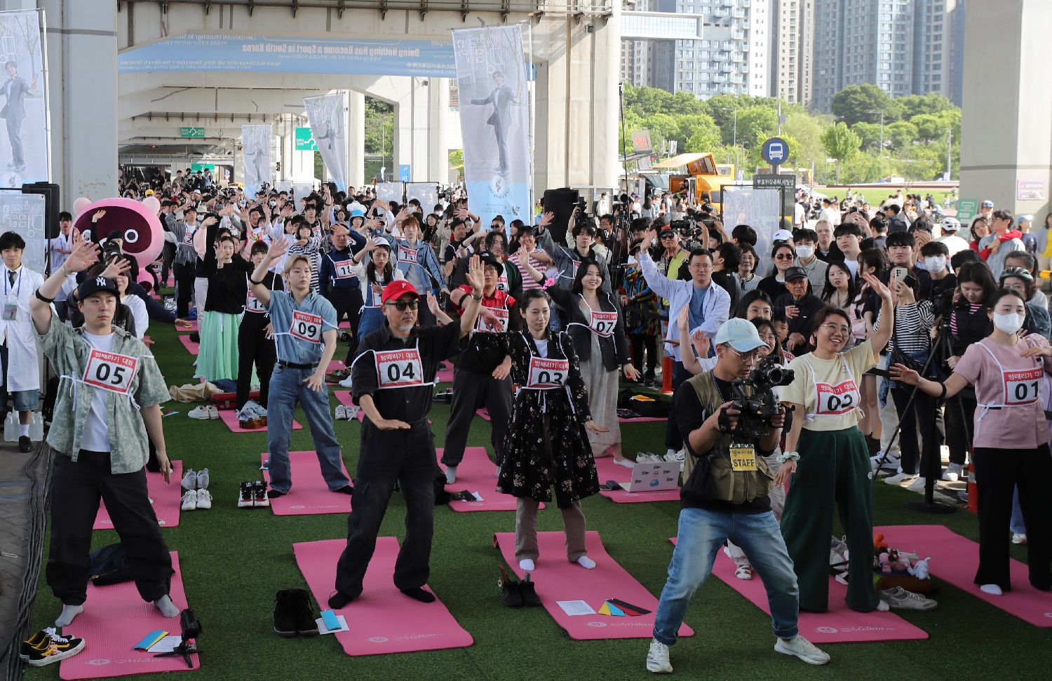 5月12日,在韩国首尔,选手在比赛前做伸展运动。(图片来源:本文图片均据新华社)