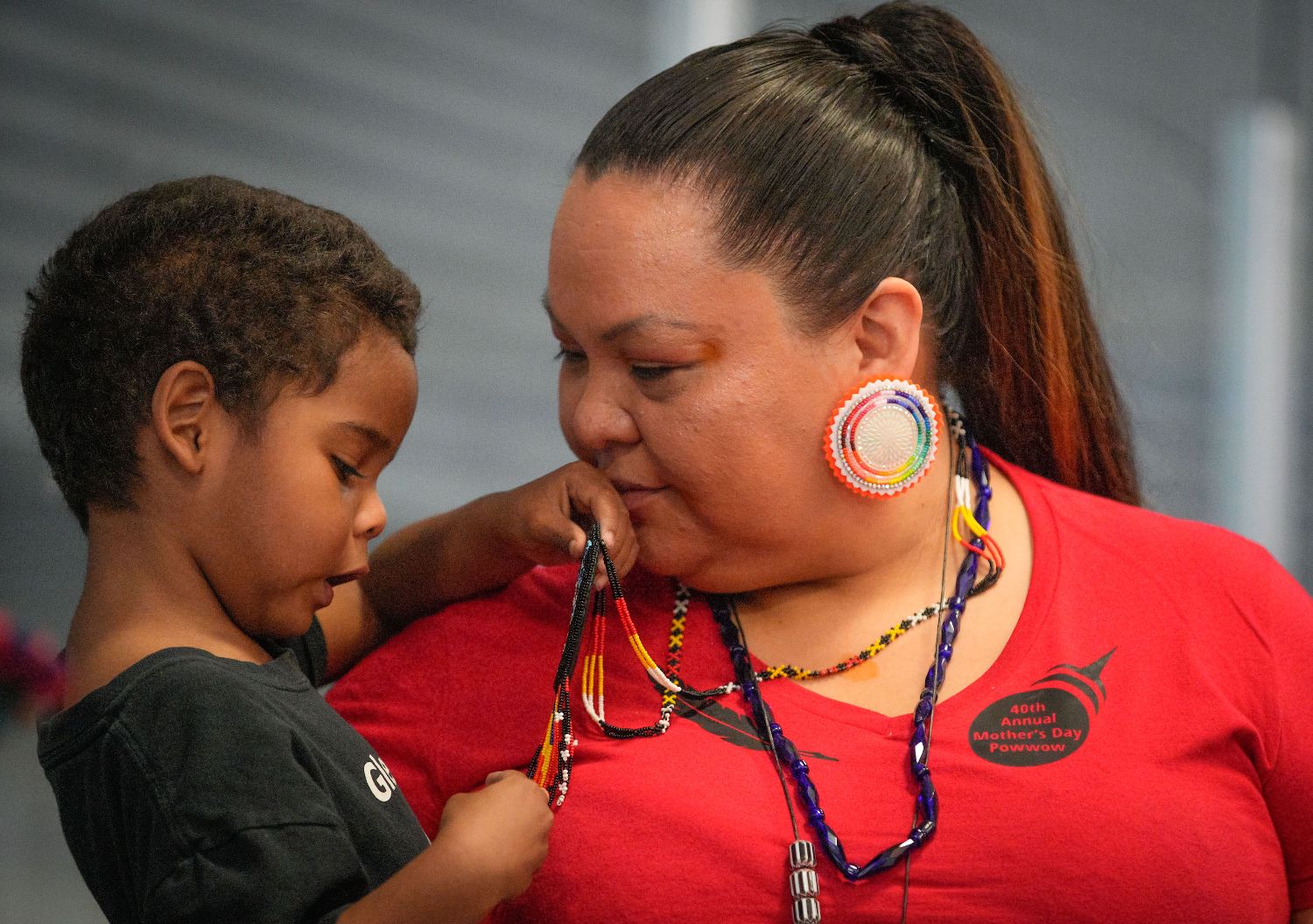 5月12日,在加拿大温哥华,一对母子参加“帕瓦”活动庆祝母亲节。(图片来源:本文图片均据新华社)