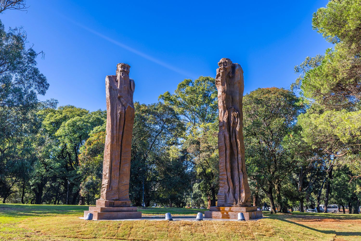 这是5月28日在乌拉圭首都蒙得维的亚市中心的巴特列公园拍摄的雕塑作品《问道》。