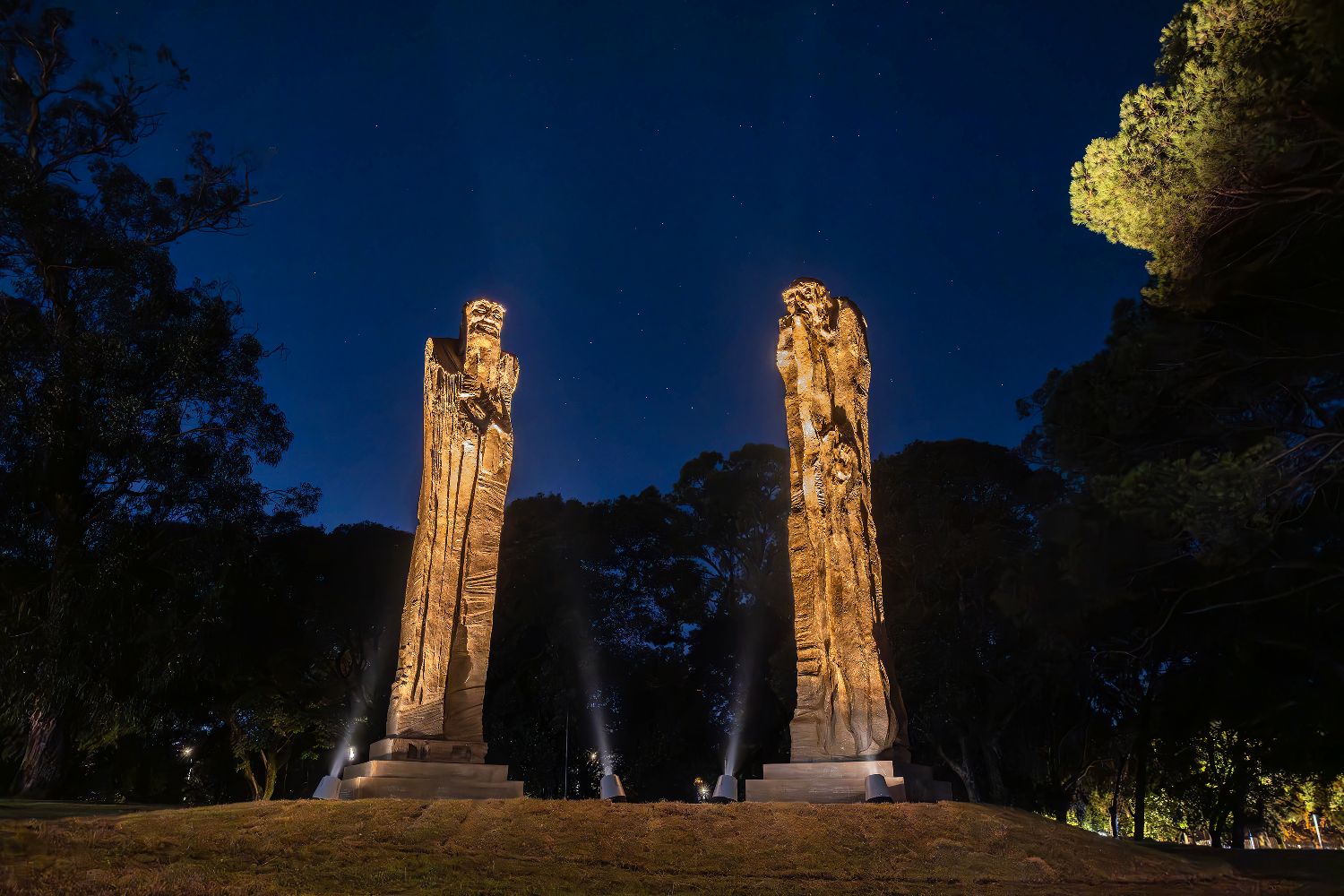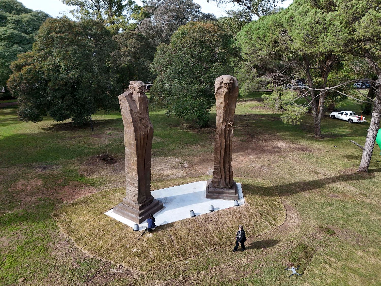 这是5月29日在乌拉圭首都蒙得维的亚市中心的巴特列公园拍摄的雕塑作品《问道》(无人机照片)。