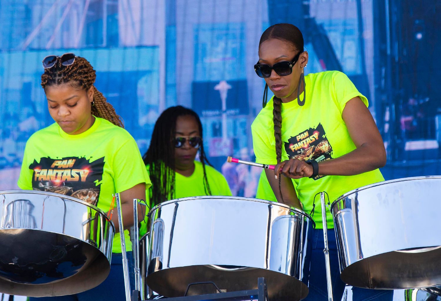 6月15日,在加拿大多伦多的加勒比狂欢节开幕式上,一支乐队演奏钢鼓。