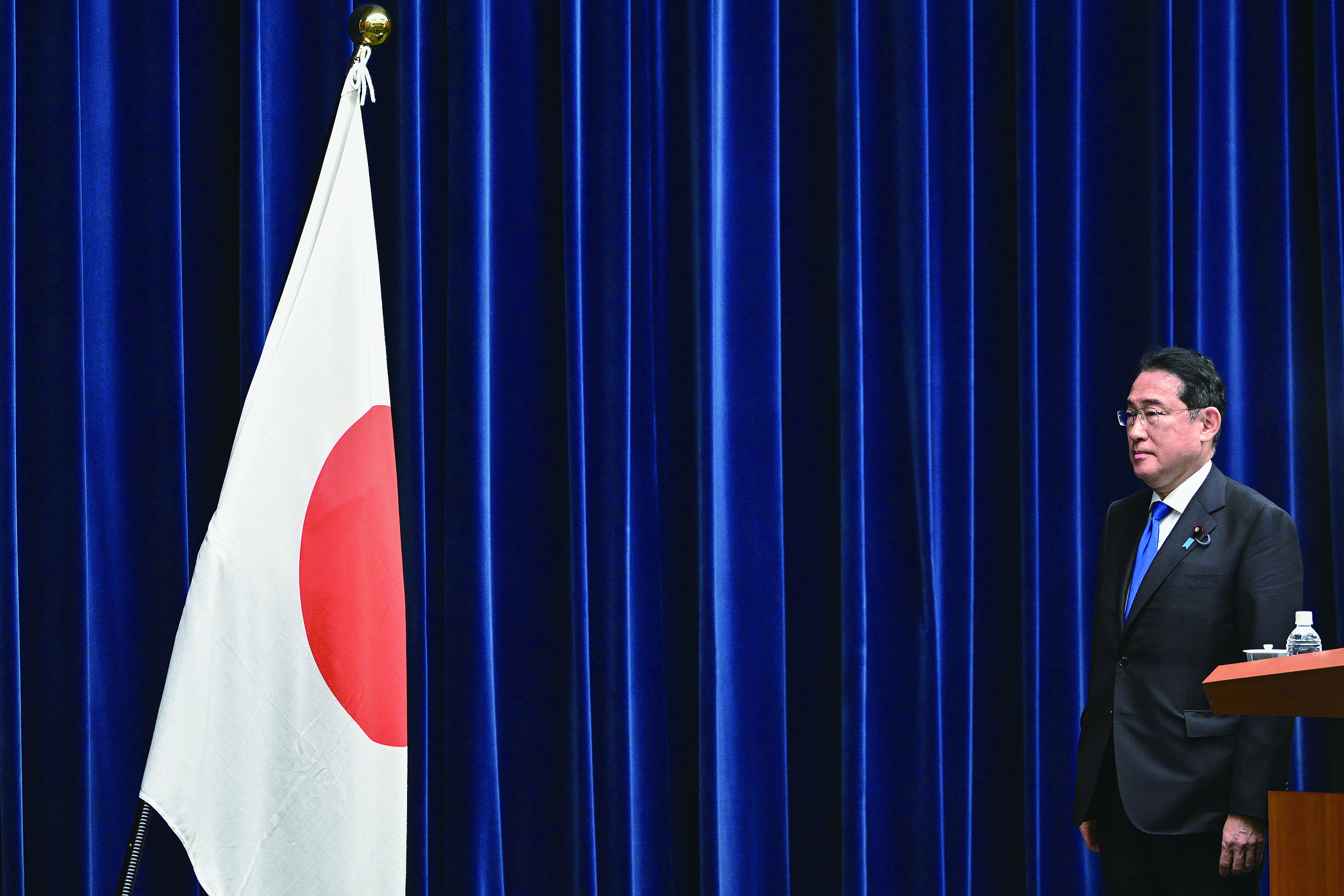 8月14日,日本首相岸田文雄出席在东京首相官邸举行的记者会并宣布不参加9月的自民党总裁选举。(图片来源:新华社)