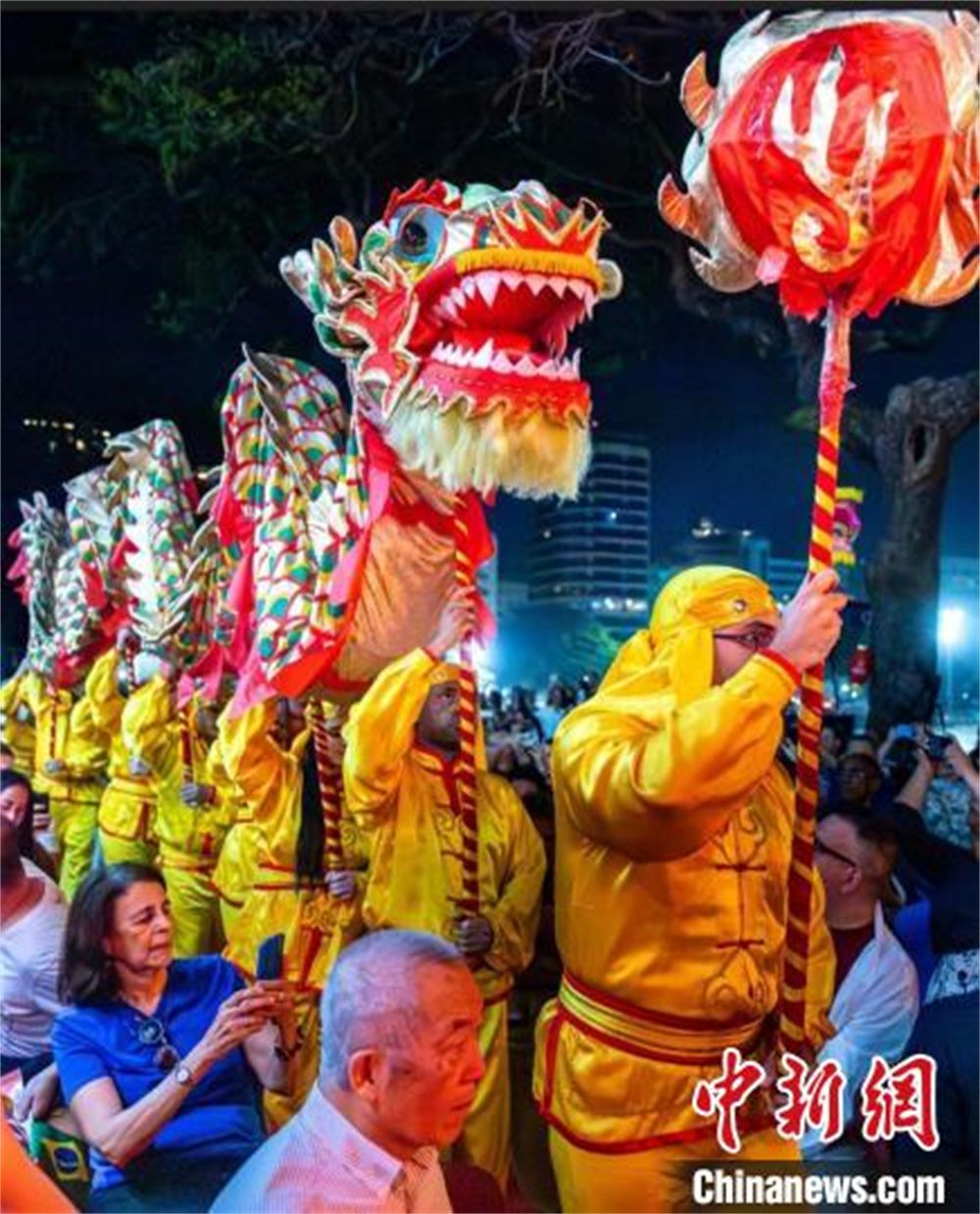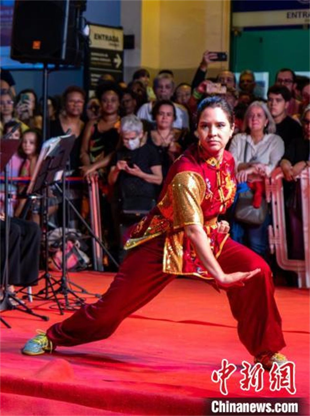活动现场张灯结彩,舞台充满浓厚中国特色。里约州功夫雄鹰协会带来了传统的舞龙舞狮表演,翻腾跳跃,令人目不暇接。武林道学院的武术表演动作刚劲有力,展示了中国武术的独特魅力。
