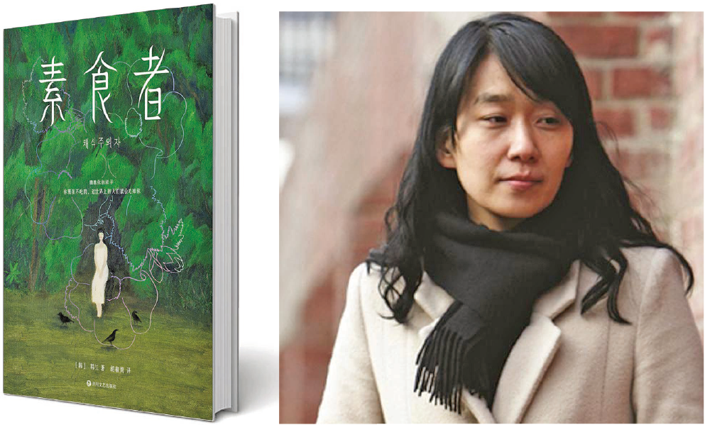 左图为《素食者》简体中文版,右图为本书作者韩江。(图片来源:四川文艺出版社/韩国文学数字图书馆)