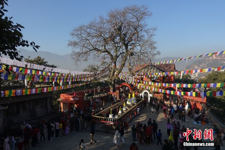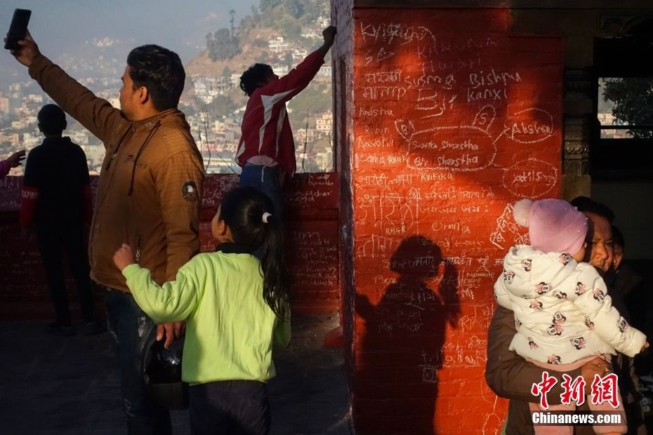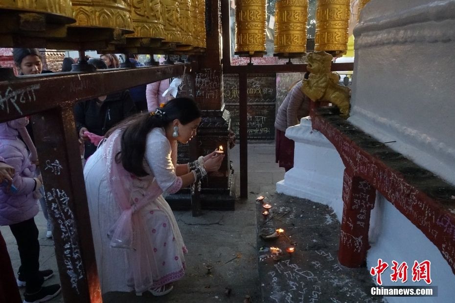 图为2月3日,尼泊尔民众在萨拉斯瓦蒂神庙祈福留念。(图片来源:本文图片均来自中新网)