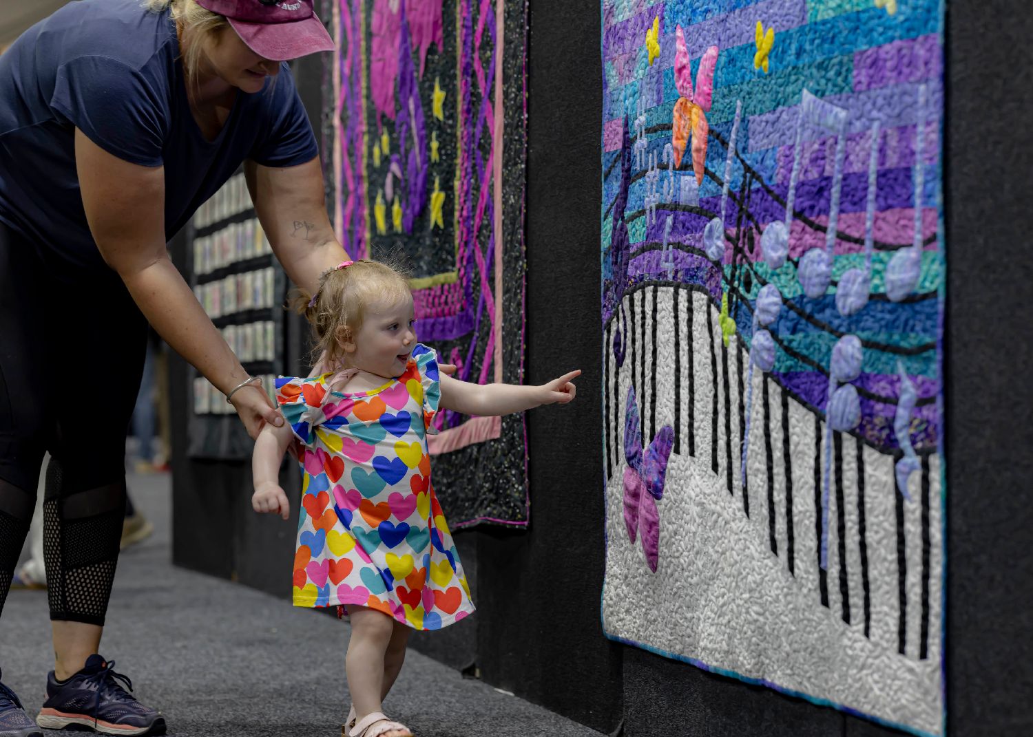 2月22日,在澳大利亚堪培拉展览公园举行的“皇家堪培拉秀”上,一位女士带着孩子欣赏手工艺品。