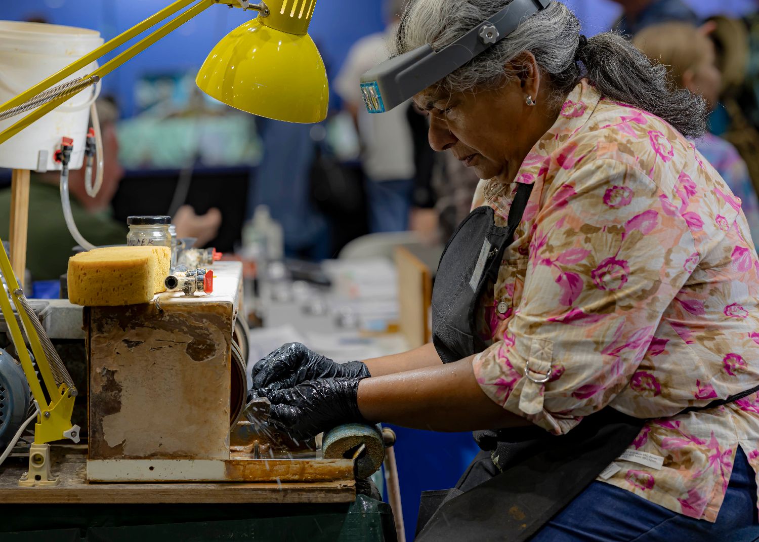 2月22日,在澳大利亚堪培拉展览公园举行的“皇家堪培拉秀”上,一位女士制作手工艺品。