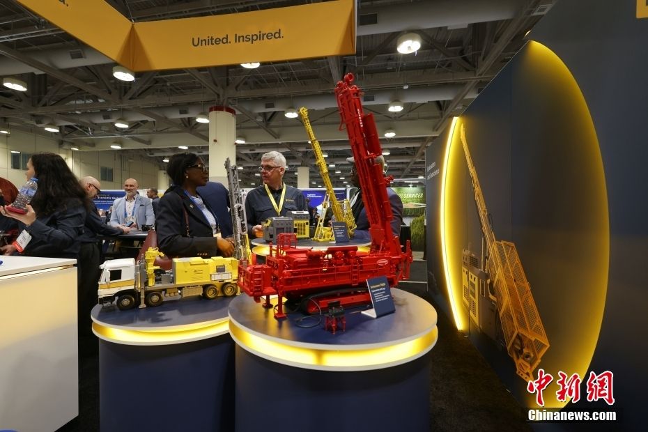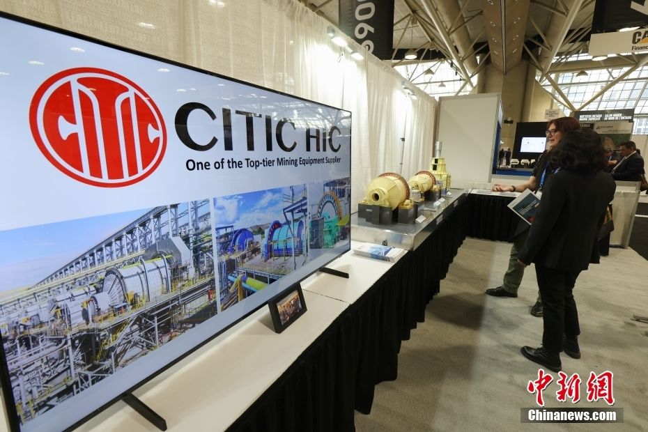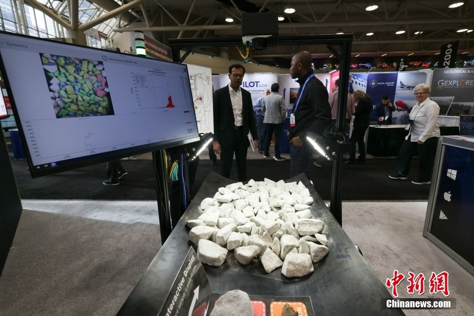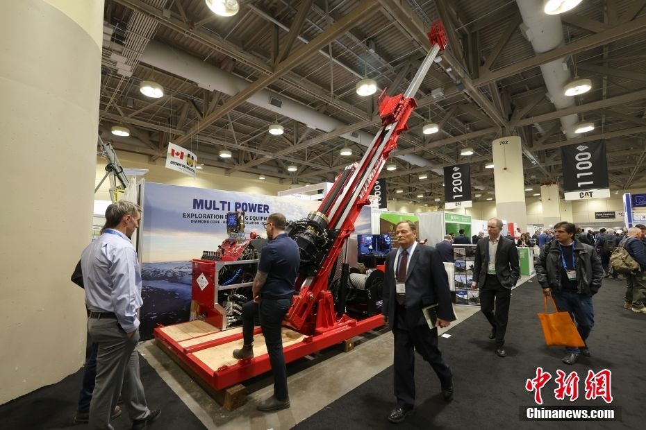 图为在3月2日揭幕的2025年加拿大国际矿业大会上,有参展商展示其矿业设备。(图片来源:本文图片均来自中新网)