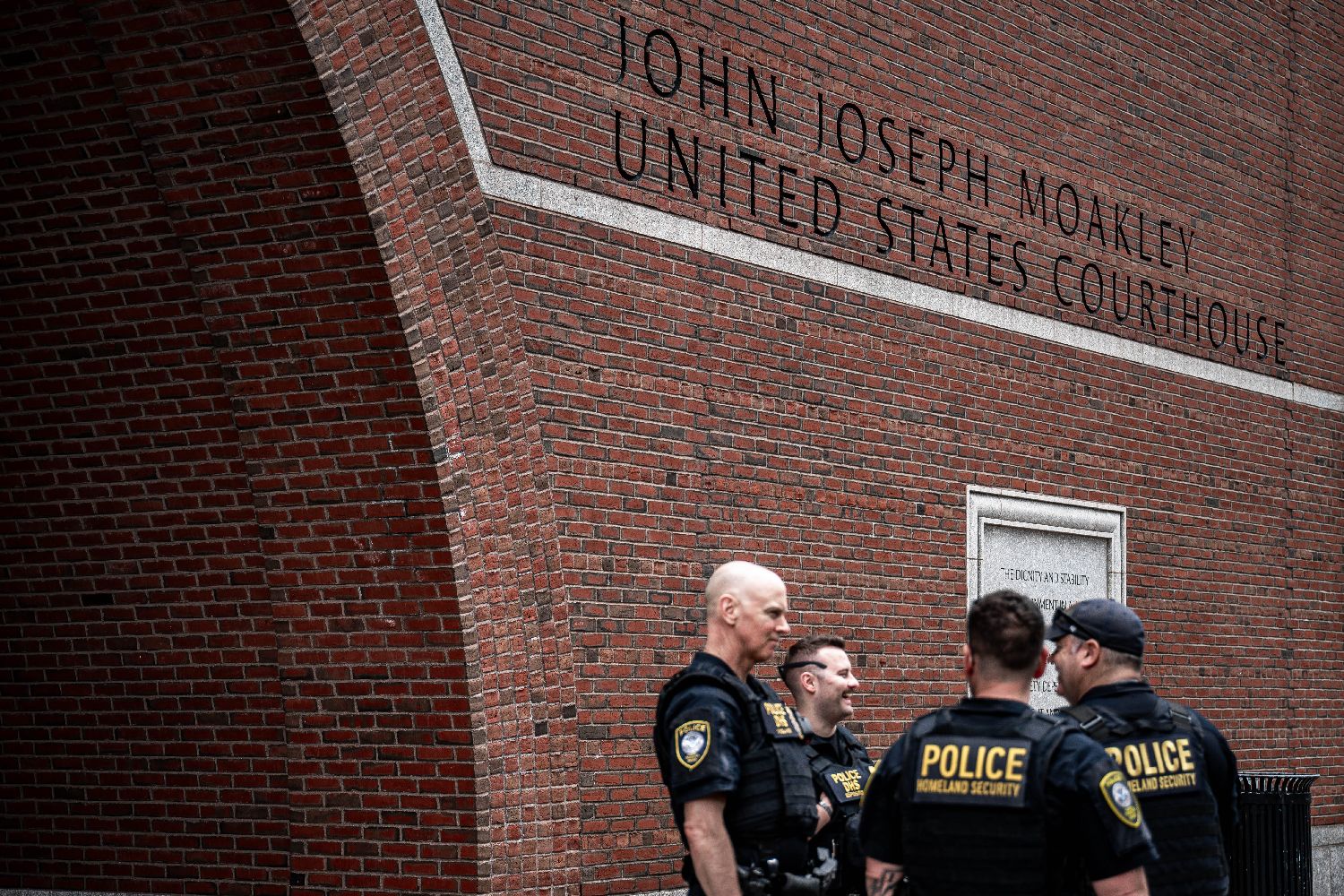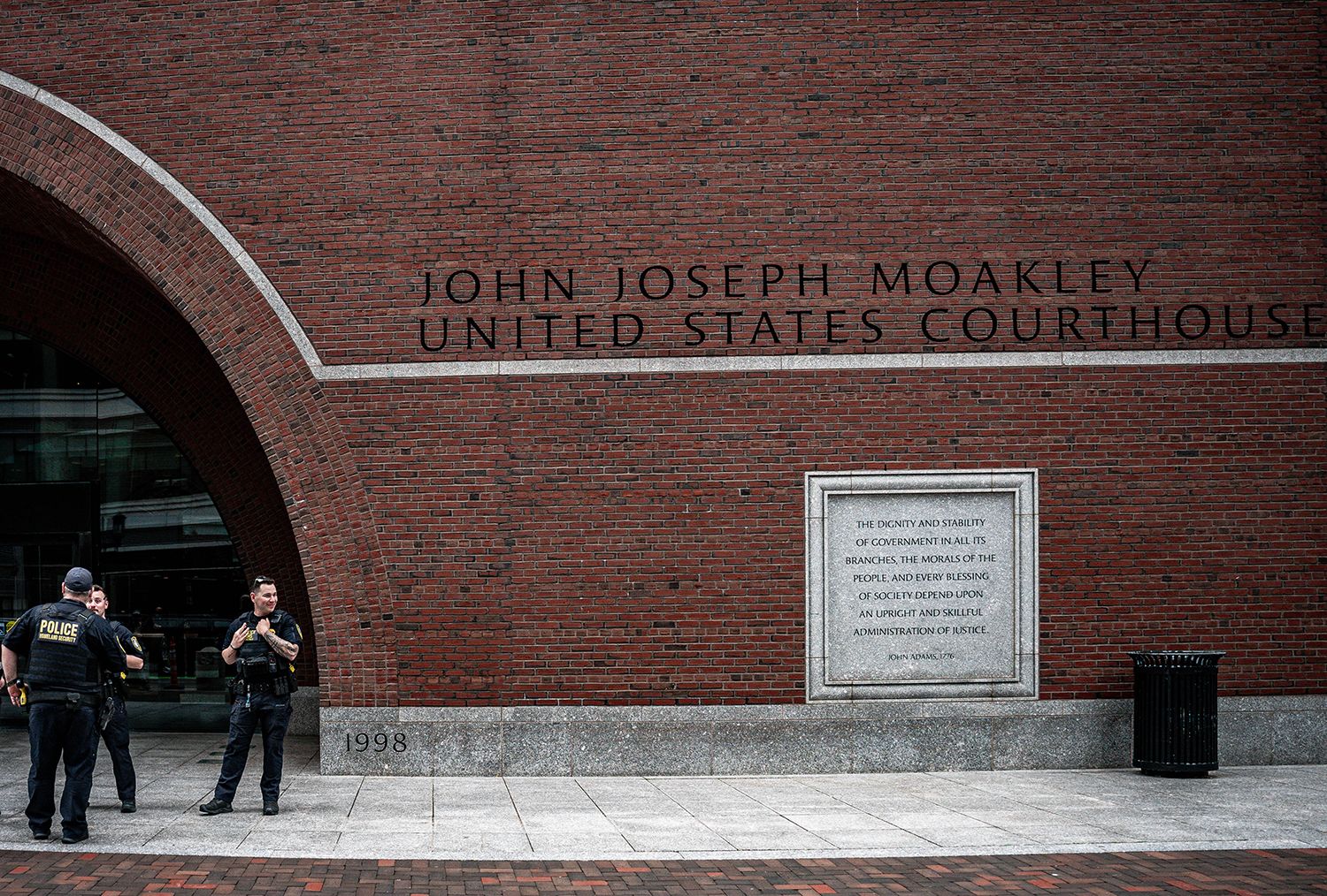 5月29日,在美国马萨诸塞州波士顿,警察站在马萨诸塞州联邦地区法院外。