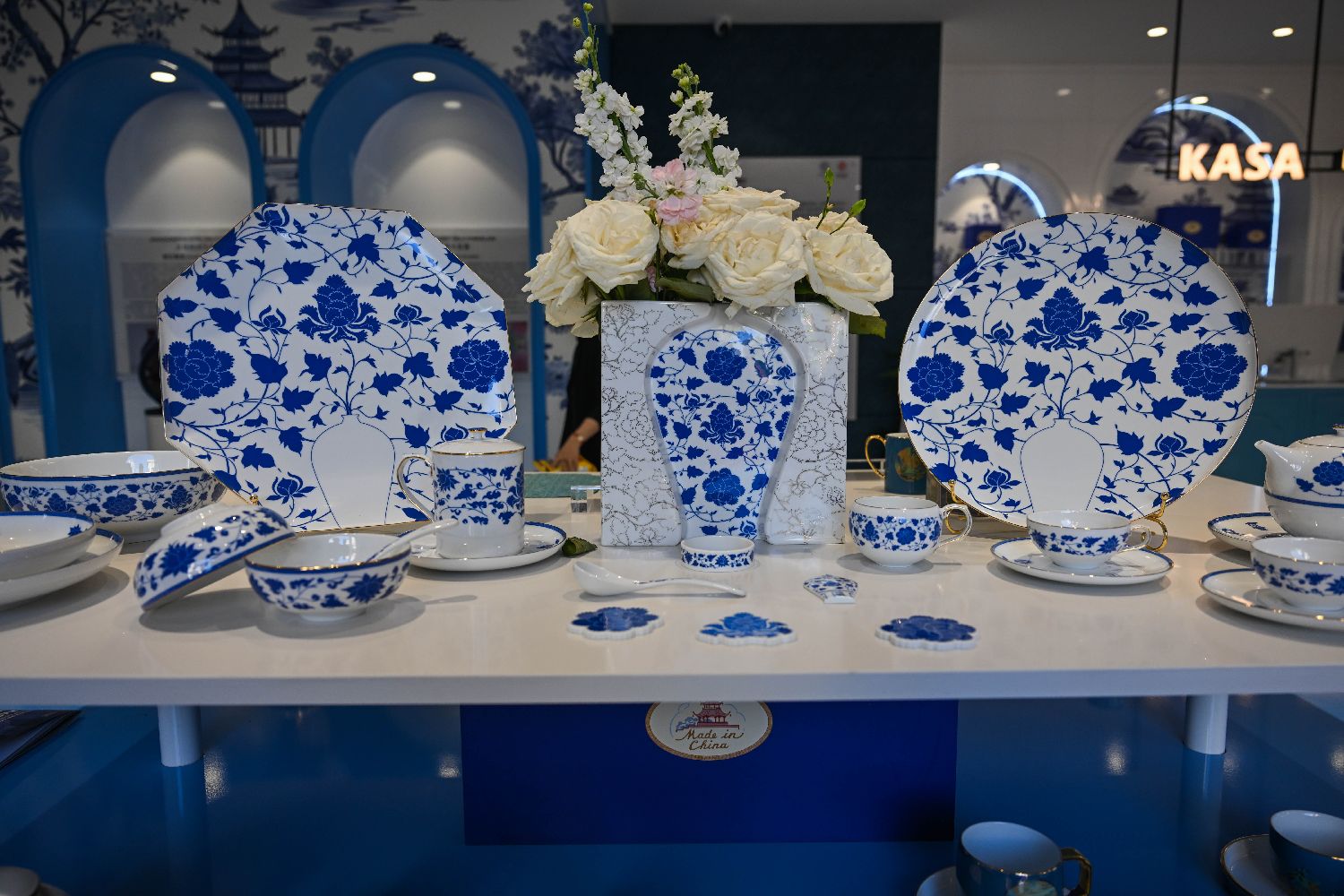 在土耳其伊斯坦布尔景德镇陶瓷官方旗舰店内拍摄的中国瓷器。