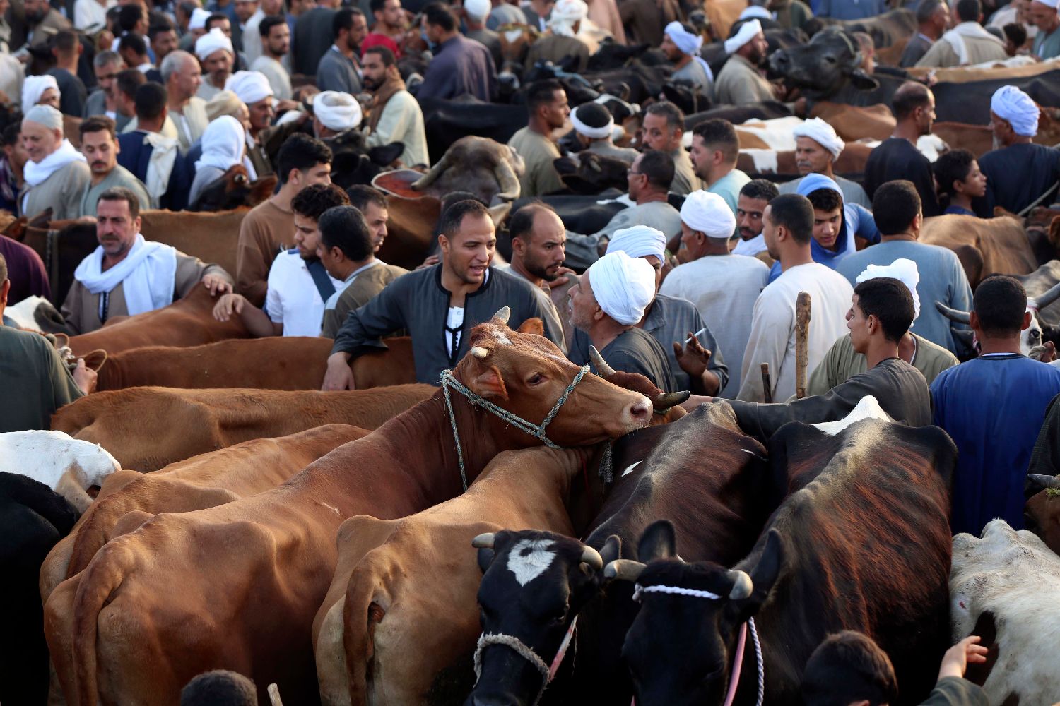 6月2日,人们在埃及吉萨省的牲畜市场上交易。(图片来源:本文图片均据新华社)