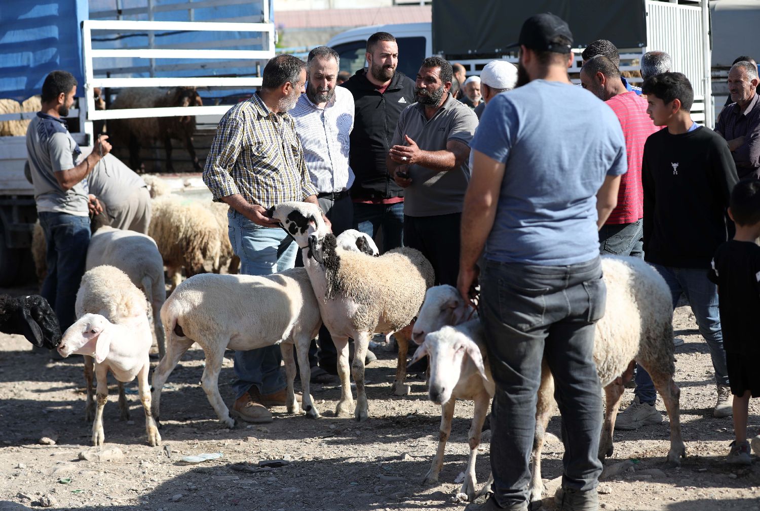 6月2日,人们在约旦河西岸城市纳布卢斯的牲畜市场上交易。