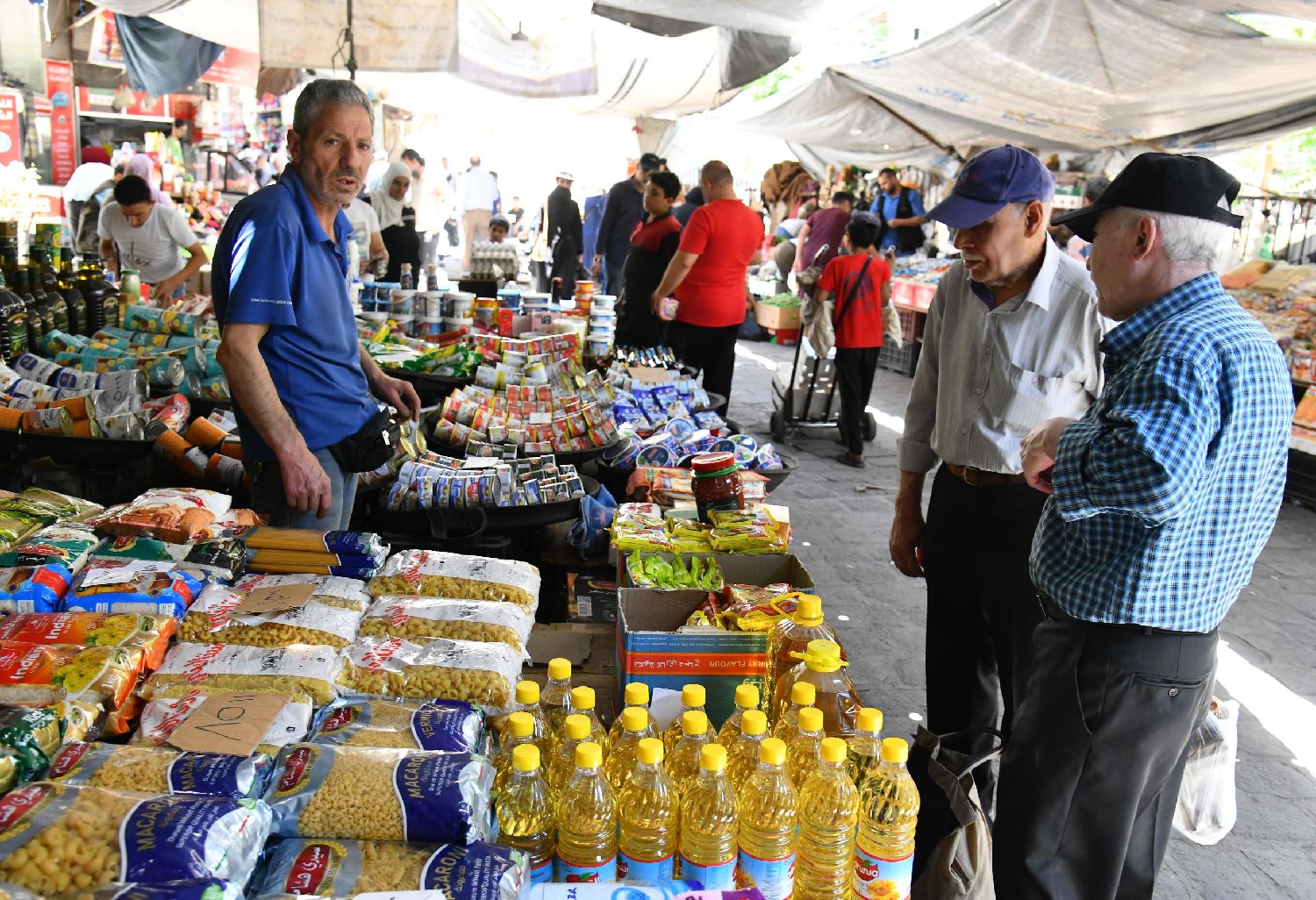 6月2日,在叙利亚大马士革,人们在集市上购物。